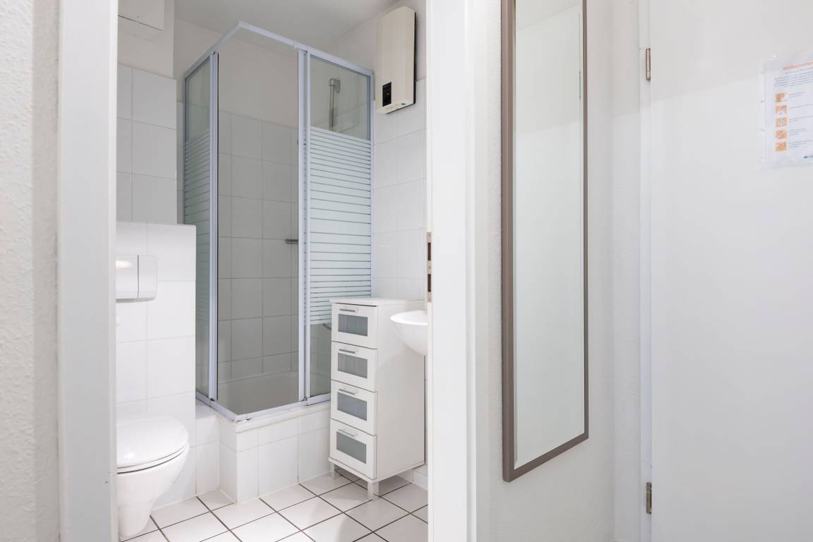 Geradeaus durch den Flur erreichen Sie den gemütlichen Wohnbereich mit Zugang zum Balkon. Es erwarten Sie ein Schlafsofa (140x200 cm), zwei Sessel, ein Fernseher sowie ein Esstisch. Die kleine, gut ausgestattete Küche grenzt offen an den kombinierten Wohnbereich. Das separate Schlafzimmer verfügt über zwei Einzelbetten (je 90x200 cm), einen Fernseher und einen großen Einbauschrank. Im innenliegenden Badezimmer sind WC und Dusche sowie eine kleine Kommode für Ihre Badutensilien vorhanden. Durch den Wohnbereich gelangen Sie auf den überdachten, möblierten Balkon mit Blick ins Grüne.