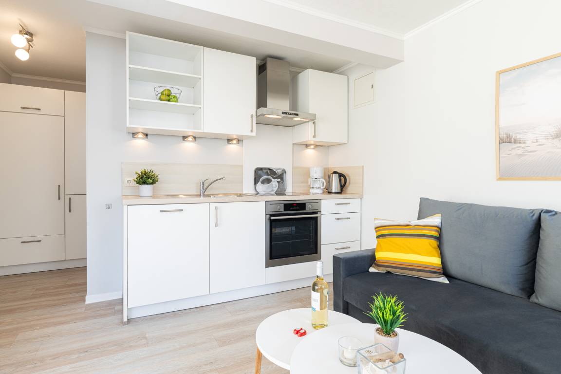 „Die Wohnung hat eine perfekte Lage, direkt am neuen Dünenpark. Die Ausstattung ist in Ordnung, es ist alles da was benötigt wird, allerdings wären 2-3 Kaffebecker mehr auch nicht schlecht. Wir kochen uns schon mal zwischendurch einen Tee oder Kaffee und meistens stehen die Tasse gebraucht in der Spülmaschine. Aber man kann auch einmal eine Tasse mit der Hand spülen. Wir kommen auf jeden Fall gerne wieder. R. S. H. aus Gütersloh“