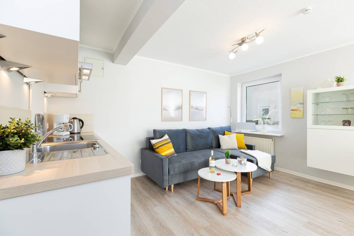 2025 NEU eingerichtet: Absolut ruhig gelegenes Komfort-Apartment in unmittelbar strandnaher Lage (Direkt am Deich, 100 m zum Strand) im Erdgeschoss für 2 bis 3 Personen auf 40 m² Wohnfläche mit einem Schlafzimmer und einem Wohnschlafraum. www.feriendomizil-hollich.de