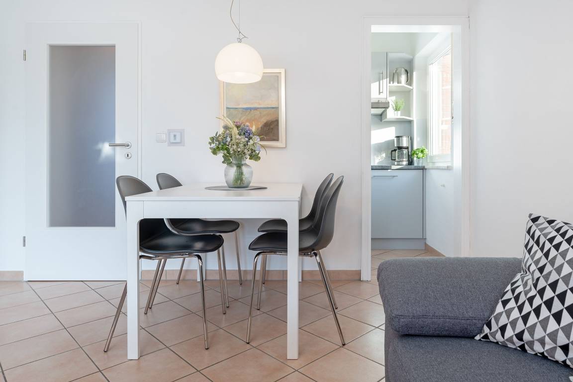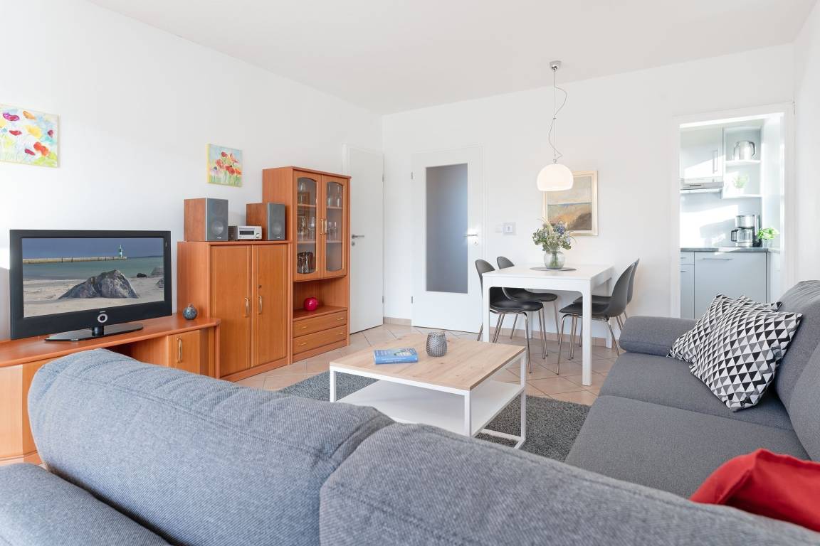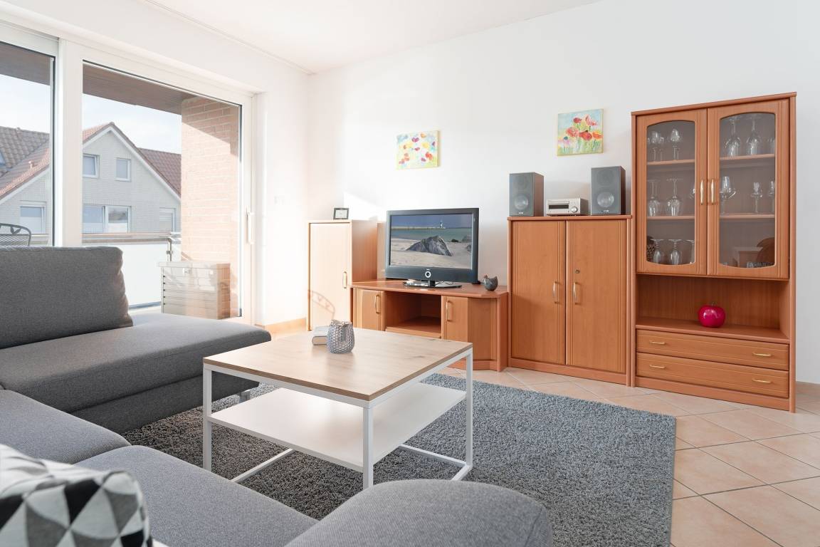 In schöner Lage von Grömitz: sonnige 3-Zimmer-Ferienwohnung mit einer Wohnfläche von ca. 42 m² im 1. Stock mit Balkon für bis zu 2 Erwachsene und 1 Kind.