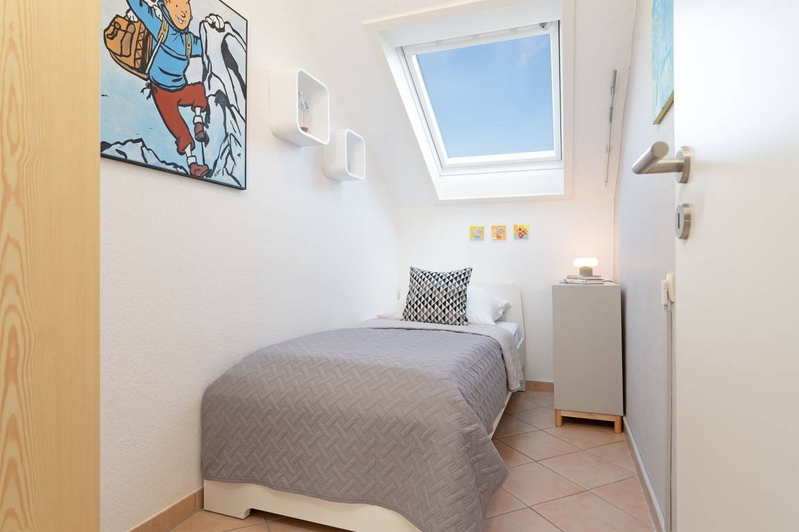 Schlafzimmer 2: 1 Einzelbett (90x200 cm), Kleiderschrank