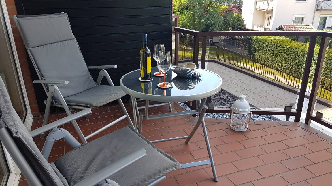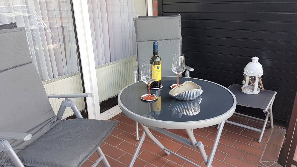 Sehr schön ausgestattete Maisonette Wohnung auf zwei Ebenen mit einem Balkon und einer Terrasse. Die Wohnung liegt in einer ruhigen Seitenstraße (ohne Verkehr) mit direktem Zugang zum Deich. Alle Einkaufsmöglichkeiten sind fußläufig erreichbar; bis zum Strand sind es ca. 300 Meter.