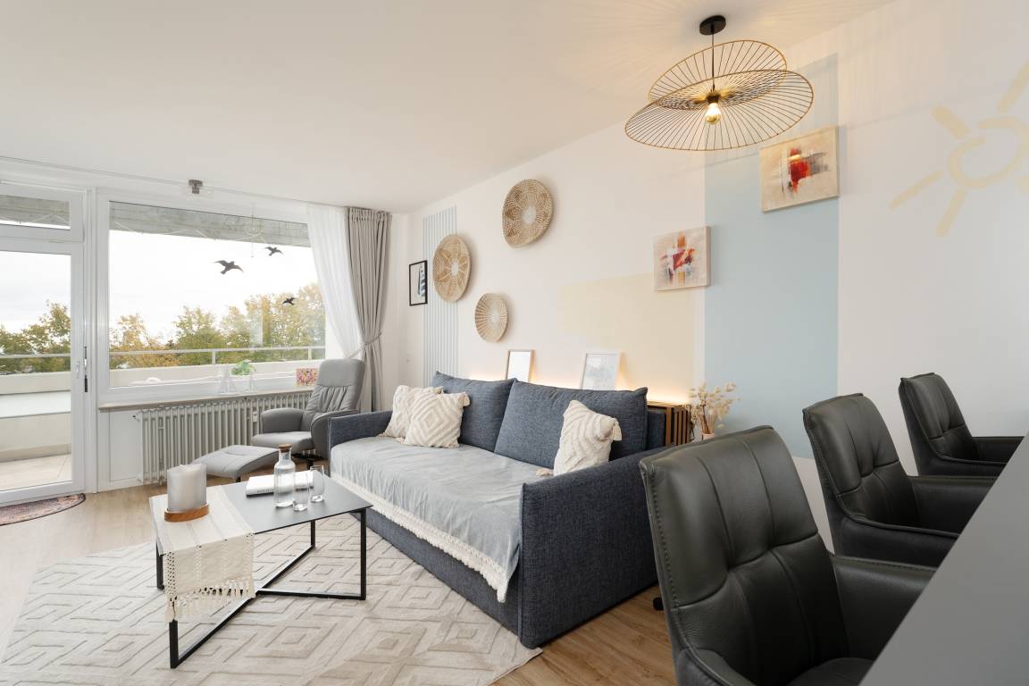 Außerdem bietet ein mobiler Arbeitsplatz mit Highspeed-Internet (100Mbit) die perfekte Basis für eine Workation mit Fernblick auf die Ostsee. Perfekt für alle, die Arbeit und Urlaub verbinden möchten: zwischendurch Aufgaben erledigen, konzentriert arbeiten und danach die Ostsee genießen. So entsteht die ideale Balance zwischen Produktivität und Erholung, ganz nach Ihrem eigenen Rhythmus. Vom Wohnbereich aus gelangen Sie auf den Balkon, der zu entspannten Pausen, kreativen Momenten oder einfach zum Genießen der Ostsee einlädt. Ein Ort, an dem Sie Urlaub und flexible Arbeit harmonisch miteinander verbinden können. Für unvergessliche Tage an der schönen Ostsee von Grömitz.
