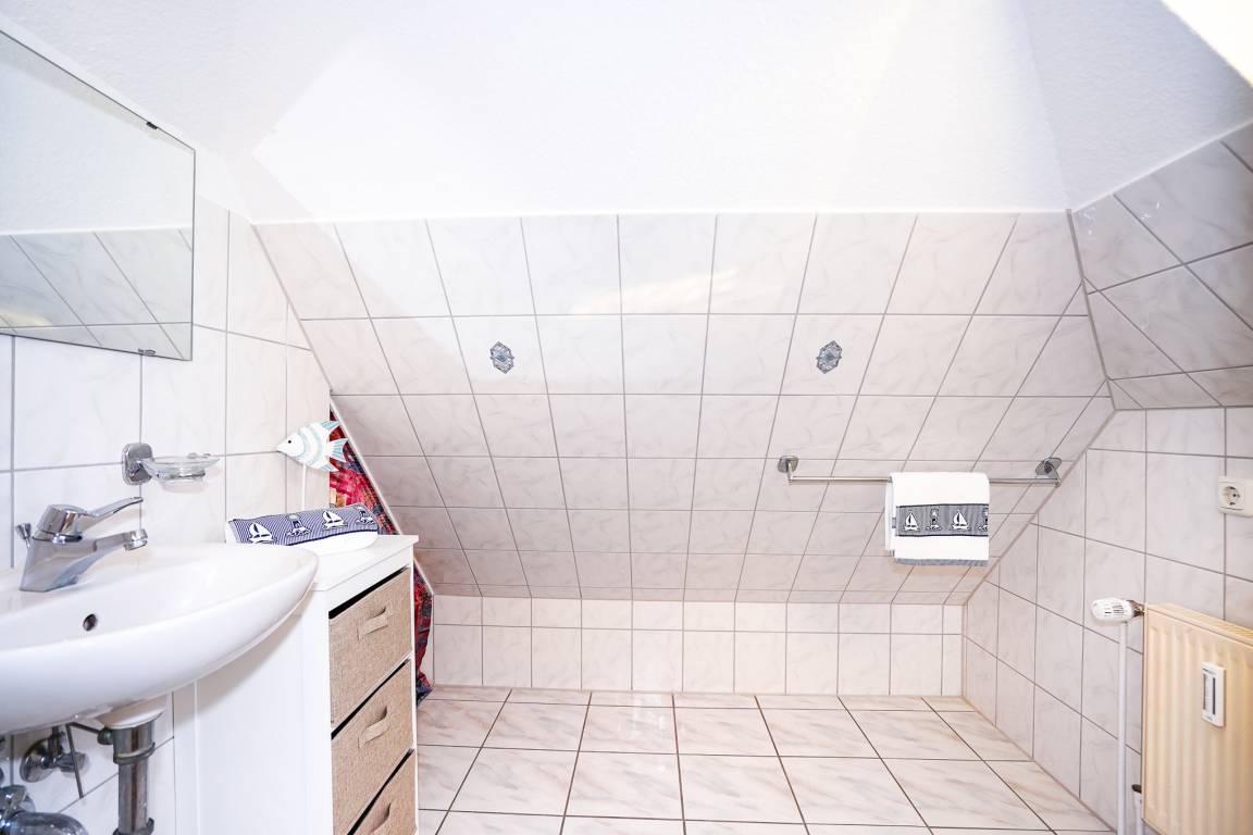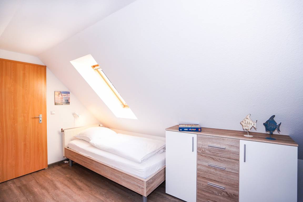 Über eine Wendeltreppe erreichen Sie ein weiteres Schlafzimmer mit zwei Einzelbetten (100x200). Im Anschluss an dieses Schlafzimmer ist noch ein Badezimmer mit WC und Waschgelegenheit vorhanden.