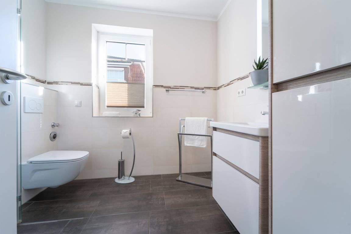 „Die Wohnung ist der Hammer! Sehr modern eingerichtet, mit Liebe zum Detail! Es ist alles vorhanden was man braucht. Die Betten sind sehr bequem und die ausziehbare Couch ist riesig (da könnten locker drei Personen drauf schlafen) und auch mega-bequem! Trotz der "nur" 54qm ist die Wohnung durch den hervorragenden Schnitt ausreichend groß. Wir waren zu dritt dort, es hätte aber locker noch eine weitere Person dort mit wohnen können (das haben wir schon anders erlebt) ! Auch die Lage ist sehr gut! Man ist schnell im Ort, aber auch schnell am Strand. Wir sind begeistert und würden diese Wohnung jederzeit wieder buchen!“