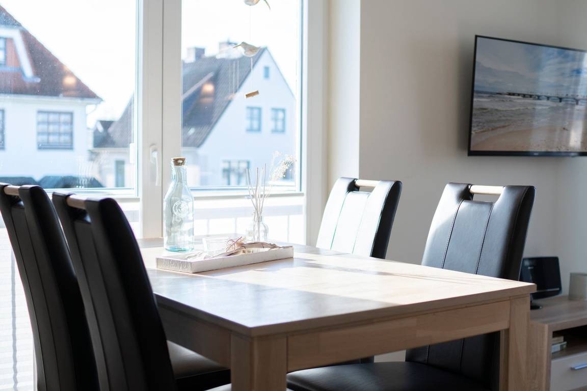 „Tolle Lage (Strand/Promenade, Gastronomie, Geschäfte etc. schnell fußläufig erreichbar). Umfangreiche Ausstattung (viel Stauraum, alle erdenklichen Küchengeräte, perfekte Verdunkelungsmöglichkeiten, sogar ein Wäscheständer). Geschmackvoll und modern eingerichtet.“