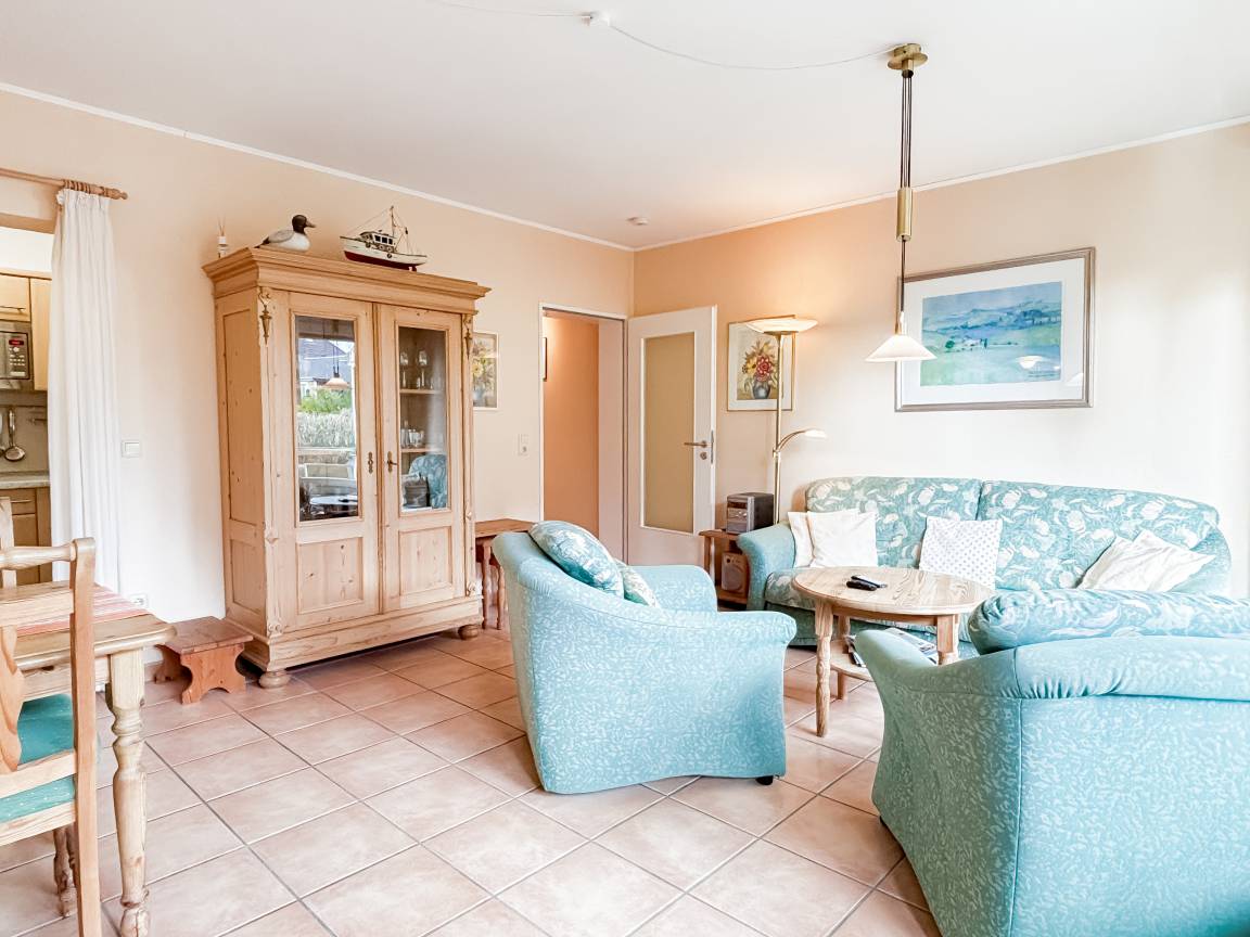 Diese geschmackvoll eingerichtete 2-Zimmer-Ferienwohnung für bis zu 2 Personen + Kleinkind, liegt im Hochpaterre einer kleinen Wohnanlage. Ca. 2 Minuten Fußweg zum Strand, Einkaufsmöglichkeiten für den täglichen Bedarf erreichen Sie nach 2 - 3 Gehminuten.