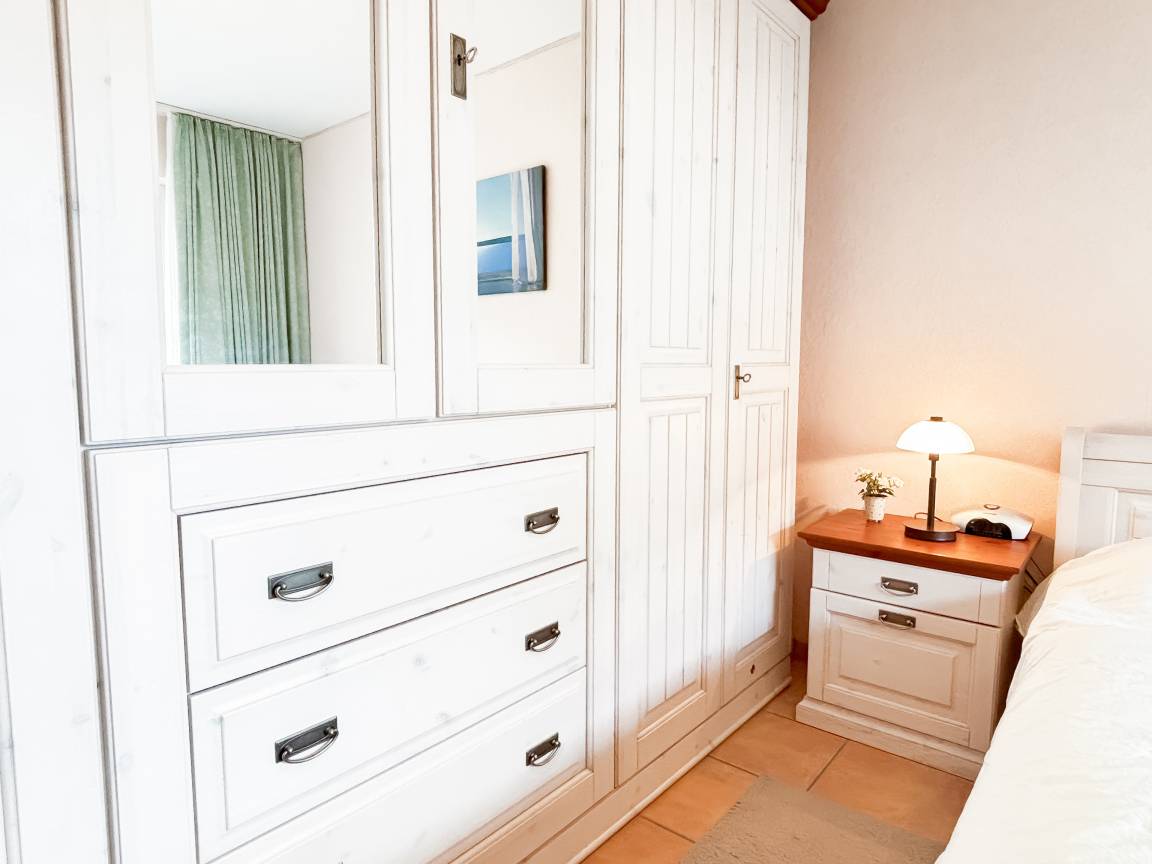 Das gemütliche Schlafzimmer ist möbliert mit einem komfortablen Doppelbett, Kleiderschrank. Rollläden zum Verdunkeln sind hier vorhanden.