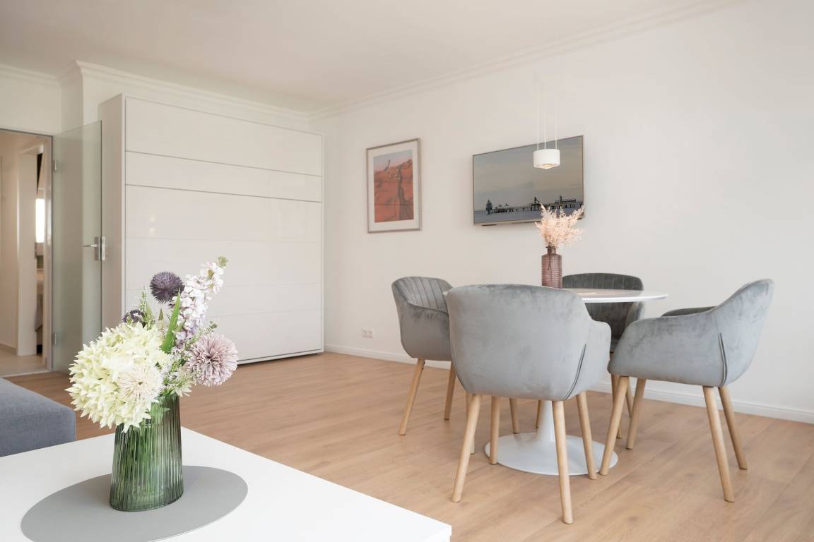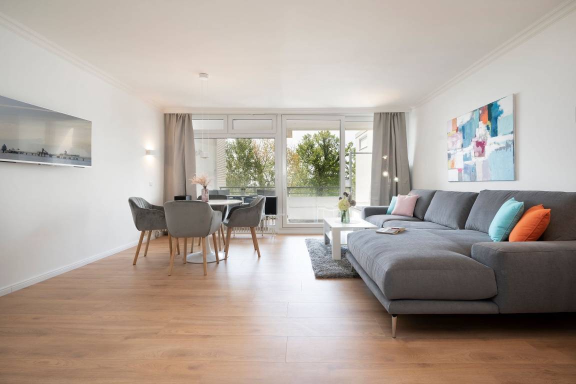 In dieser 2-ZImmer-Ferienwohung im Haus Miramar sind Sie der Ostsee und dem Strand ganz nah. Mit dem Fahrstuhl erreichen Sie mühelos Ihr ca. 52 m² großes Urlaubsdomizil, das für bis zu 4 Personen ausgestattet ist.