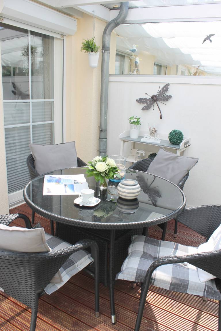 „Schöne Wohnung, überdachte Terasse, Geschirr, Besteck, Gläser ausreichend vorhanden. Sehr gut gelegen, Bäcker und Einkaufsmöglichkeiten gut zu Fuß erreichbar. Eigener Strandkorb, top. Wir würden diese Wohung wieder buchen.“