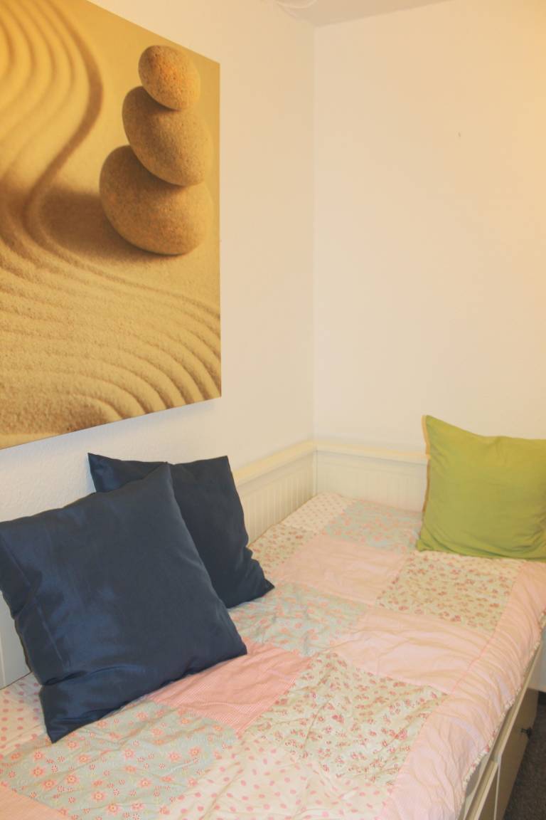 „Das Reihenhäuschen war schön und gepflegt, in ruhiger Lage, aber sehr klein im Sinne von eng. Das Zimmer im Keller war kalt, ausserdem waren das Bad und damit die Toilette 2 Stockwerke höher. Als älterere Menschen war auch das Schlafzimmer eng. Für ein junges Pärchen ohne Kinder trotzdem empfehlenswert“