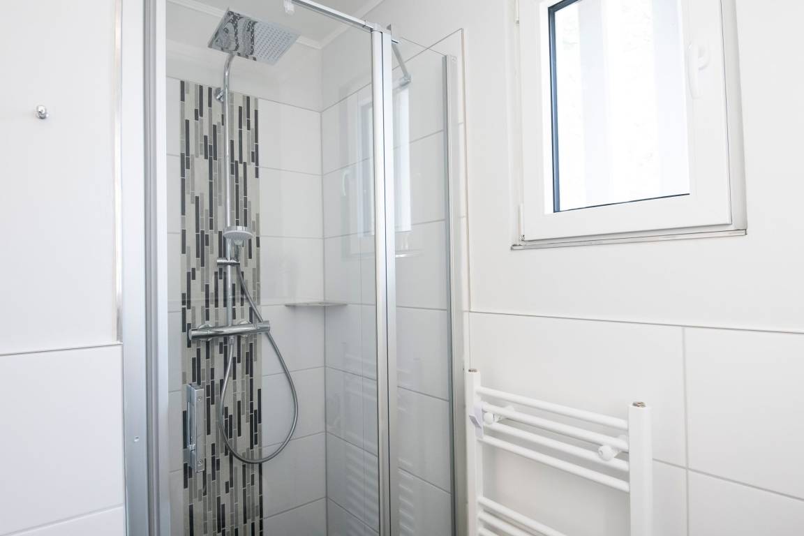 Die zwei separaten Schlafzimmer sind jeweils mit einem Doppelbett (ein Doppelbett mit durchgehender Matratze à 150x200 cm und ein Doppelbett mit 2 getrennten Matratzen je 80x200 cm) ausgestattet. Zwei kleine Bäder mit je einer Dusche bieten Komfort. Die Küche ist gut ausgestattet und sorgt für gute Laune während der Ferien, denn Annehmlichkeiten wie ein Backofen, eine Spülmaschine, eine Kühl-Gefrierkombination und sogar eine Waschmaschine sind vorhanden. Im Wohnbereich übernehmen eine Stereo-Anlage und ein Fernseher die Unterhaltung auch an Regentagen. Eine Terrasse steht Ihnen zur gemeinschaftlichen Nutzung zur Verfügung.
