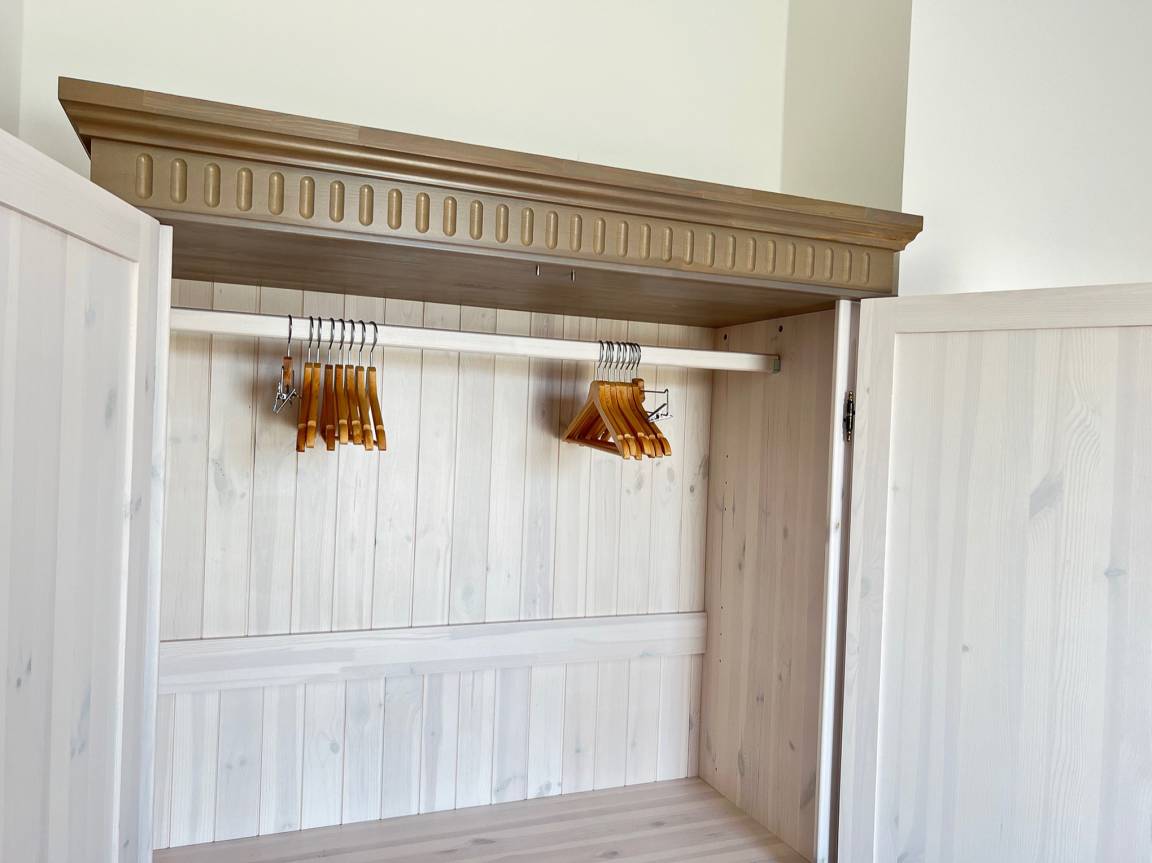 Das Schlafzimmer ist mit einem Boxspring-Doppelbett, Schrank und einem Flachbild-TV ausgestattet. Auch aus dem Schlafraum gelangt man direkt auf den Balkon und beginnt den Tag mit belebender Morgensonne.