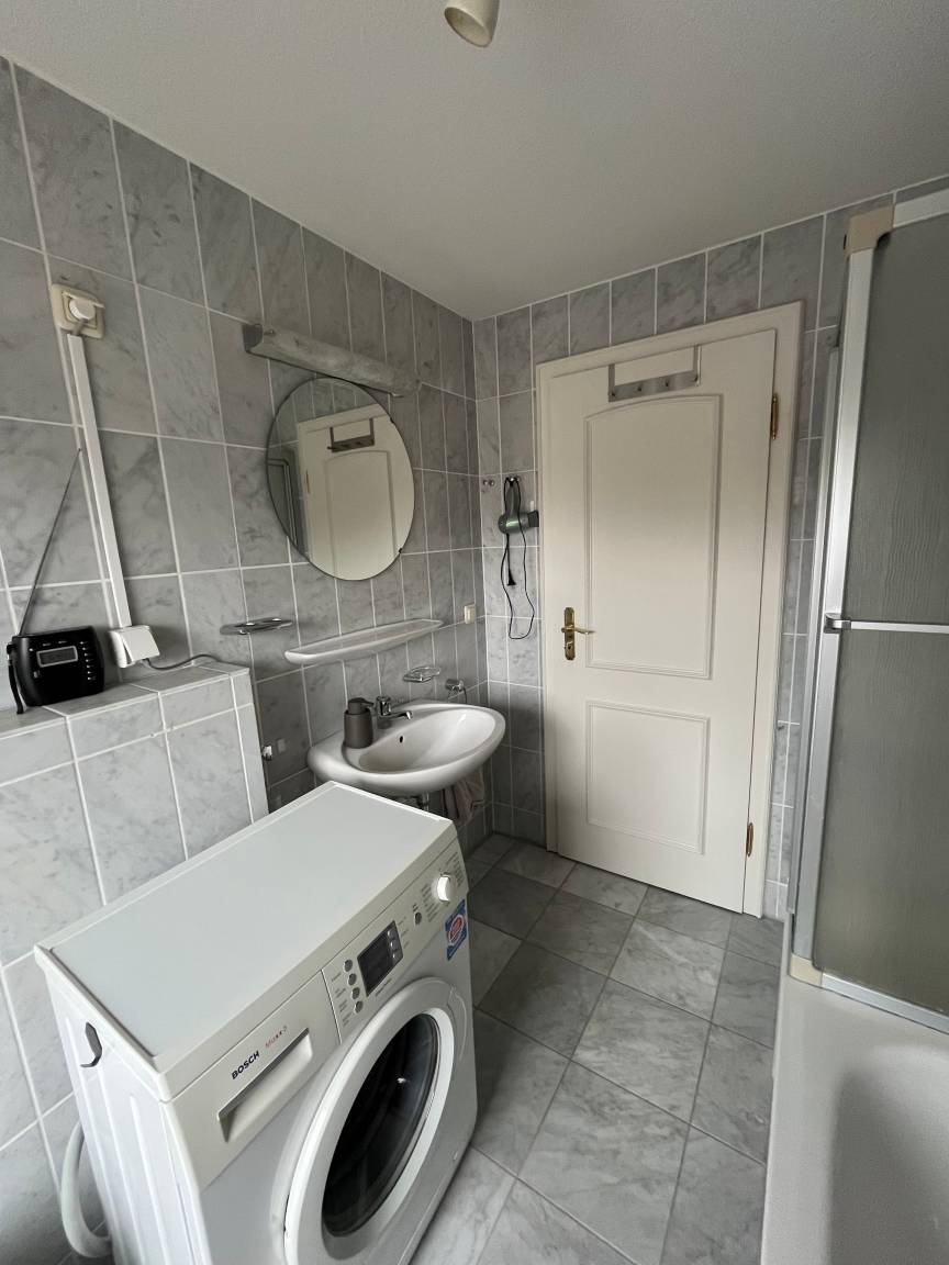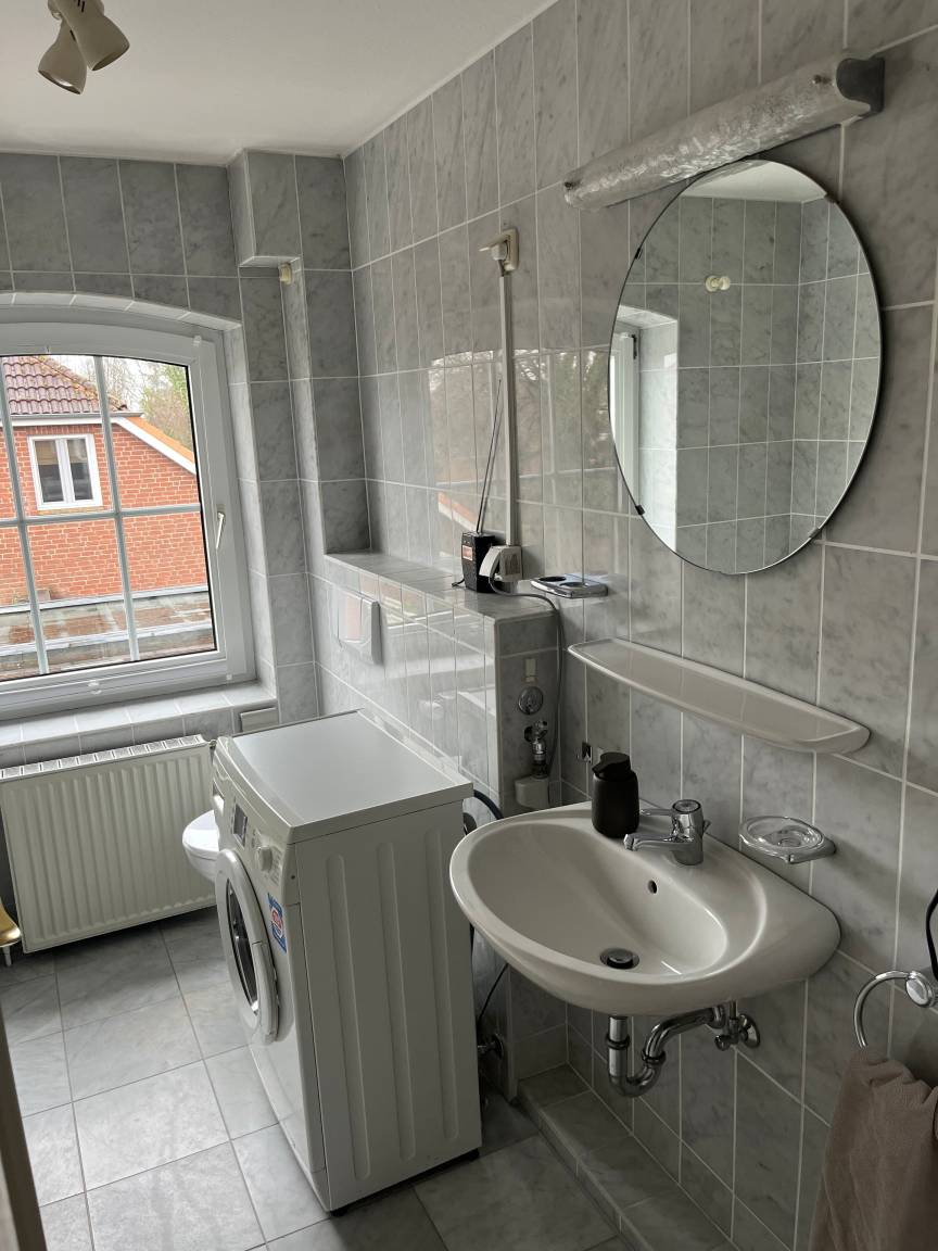 Das Tageslichtbad bietet sowohl eine Dusche als auch eine Badewanne - perfekt, um nach einem Tag am Strand zu entspannen. Eine Waschmaschine steht ebenfalls zur Verfügung.