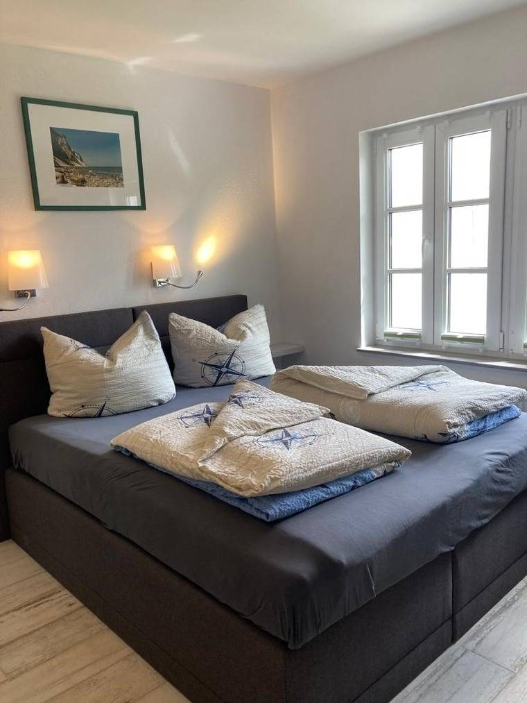 In zwei von den drei Schlafräumen befinden sich jeweils 160er Boxspringbetten, Im kleinen Kinderzimmer steht ein Stockbett (0,80m x 1,90m), eine zusätzliche Schlafmöglichkeit durch ein Einzelbett (ca.0,8 m x 1,90m).