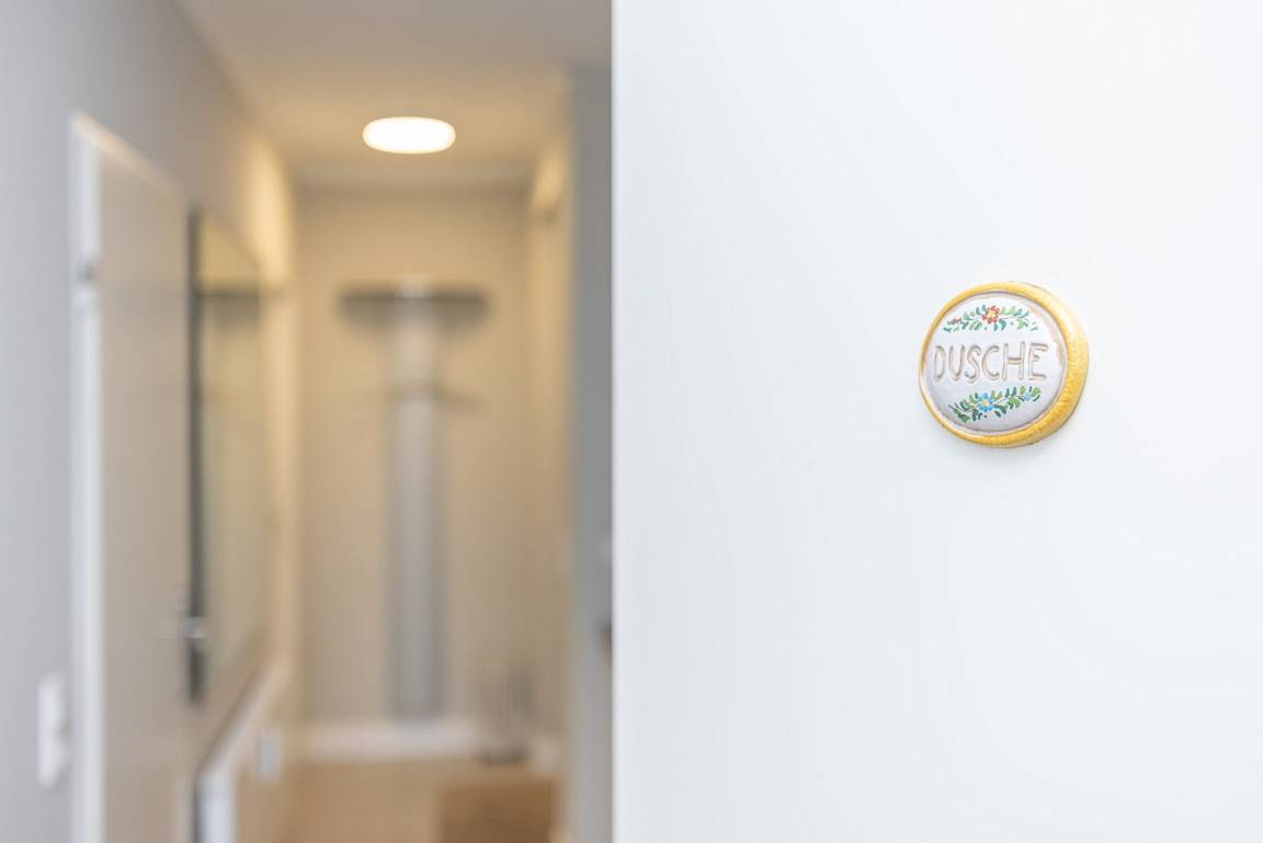 Separate, komplett ausgestattete Küche mit Fenster zum Laubengang. Die Küche ist mit einem 4-Platten E-Herd mit Backofen, Spülmaschine, Kühlschrank, einer Mikrowelle, Kaffeemaschine, Wasserkocher und Toaster ausgestattet.