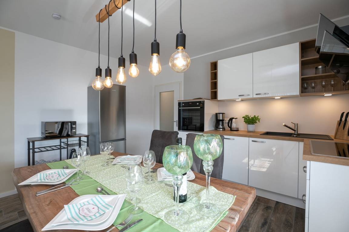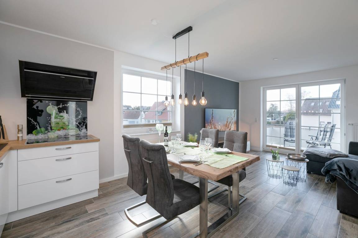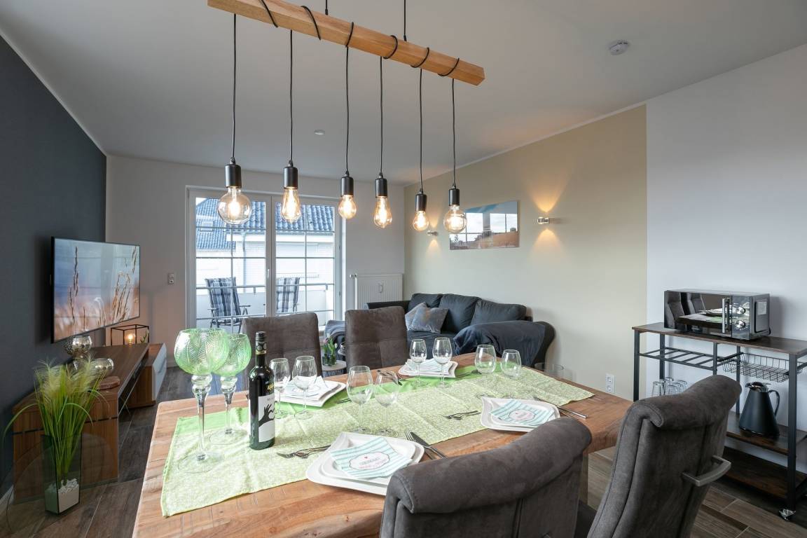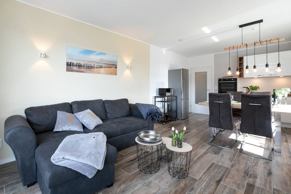 Herzlich willkommen in dieser geschmackvoll eingerichteten Ferienwohnung, welche auf ca. 58 m² Platz für max. 4 Erwachsene bietet. Es erwartet Sie ein hell und modern eingerichteter Wohn- und Essbereich mit offener Küche sowie 2 separate Schlafzimmer und ein Bad.