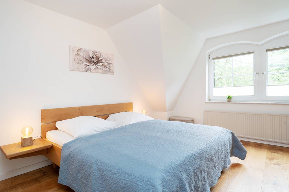 Schlafzimmer 1: 1 Doppelbett (2x 90x200 cm), Kleiderschrank, Verdunkelung: Verdunkelungsplissees, Platz für ein Babybett vorhanden