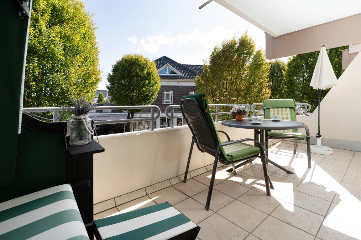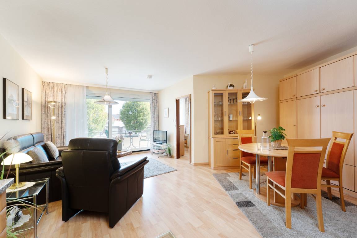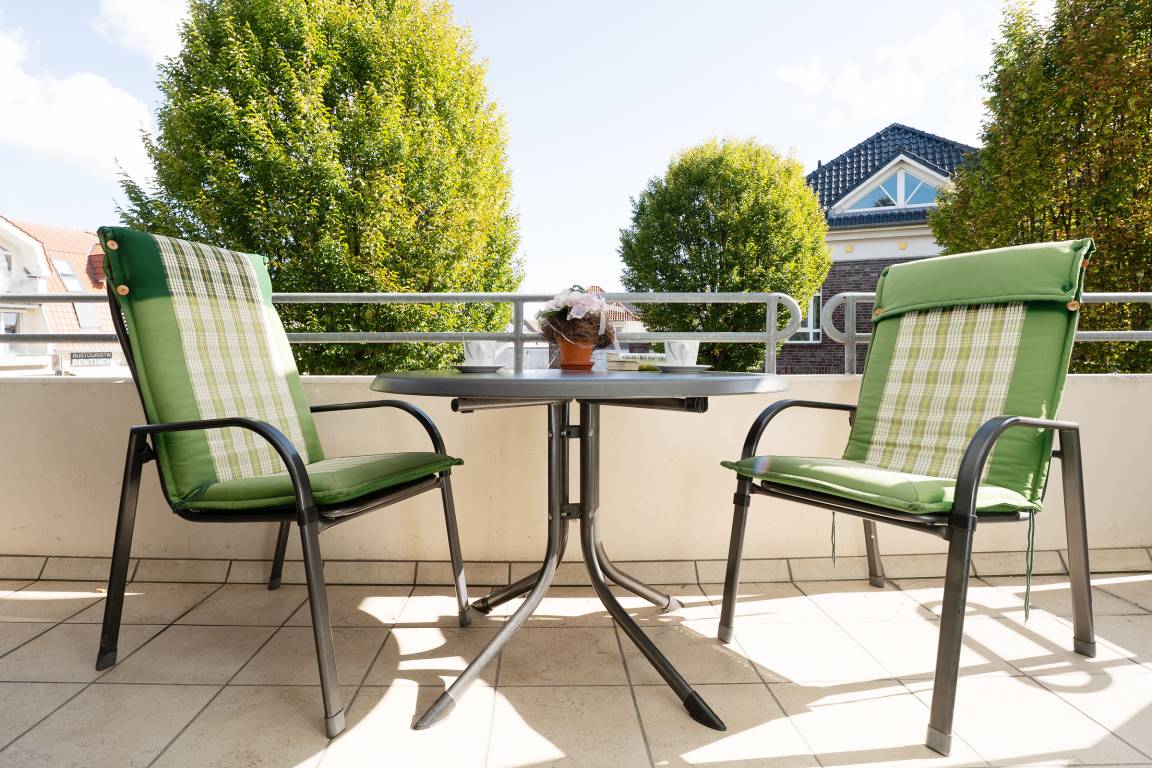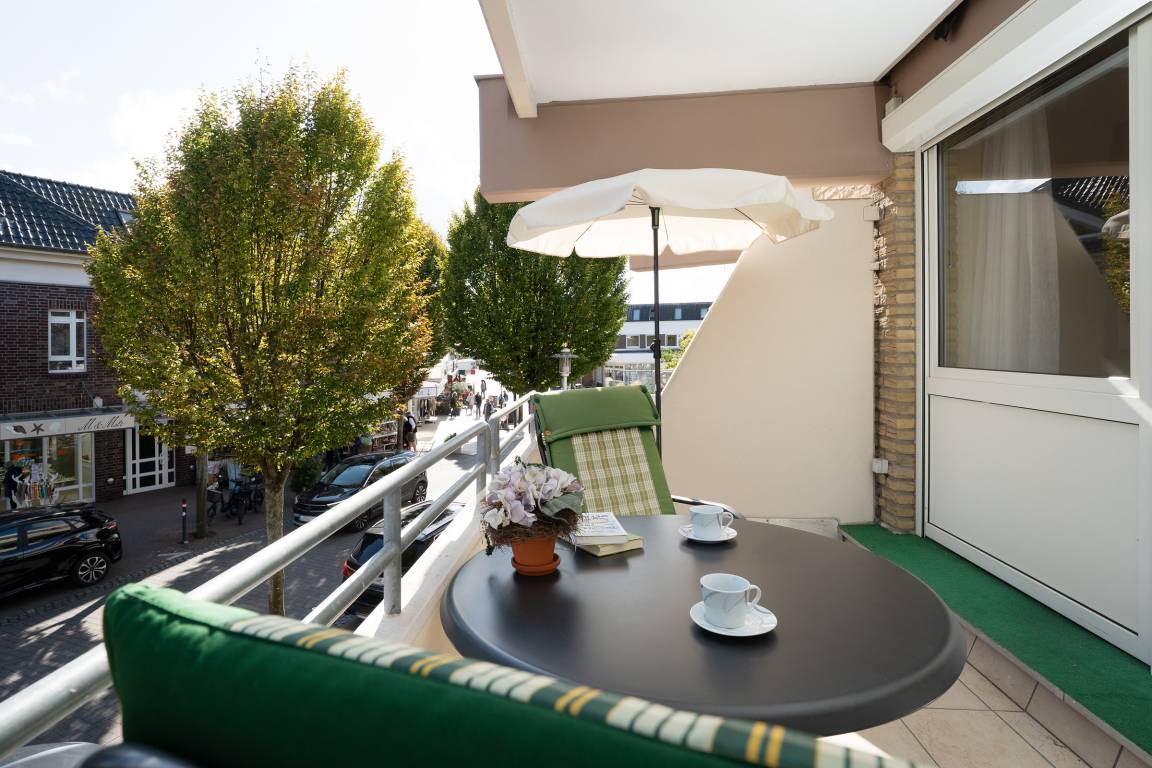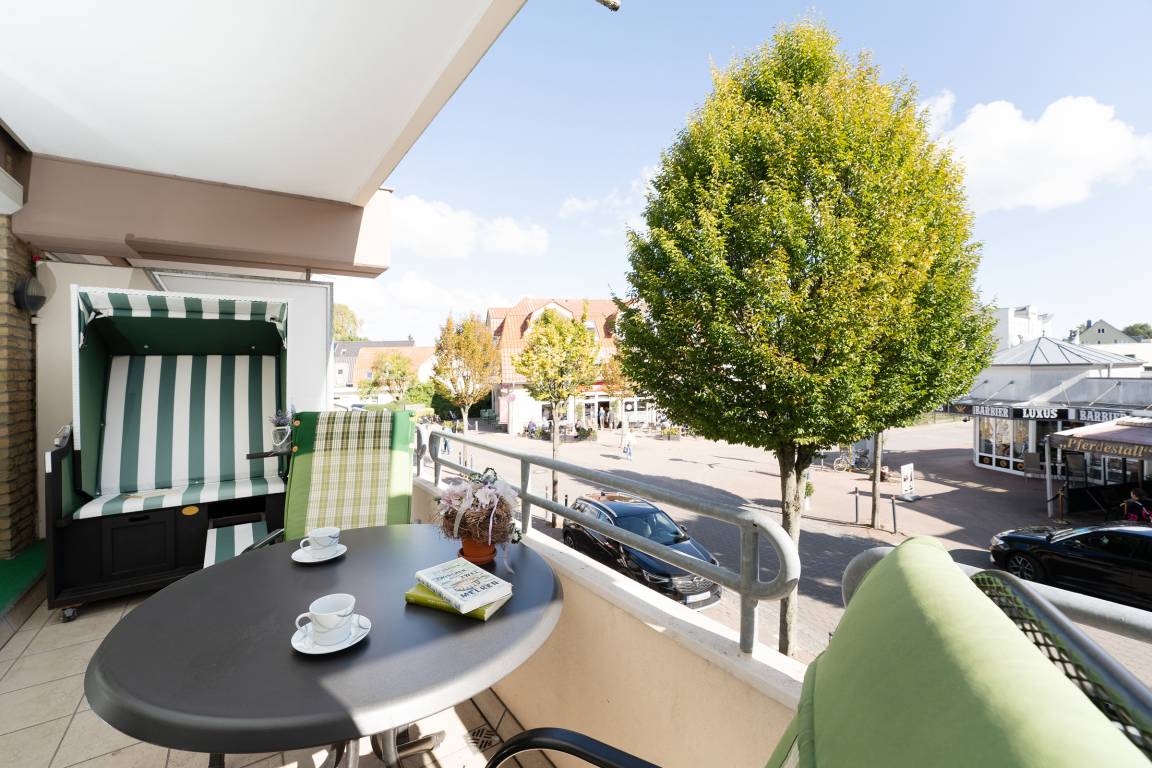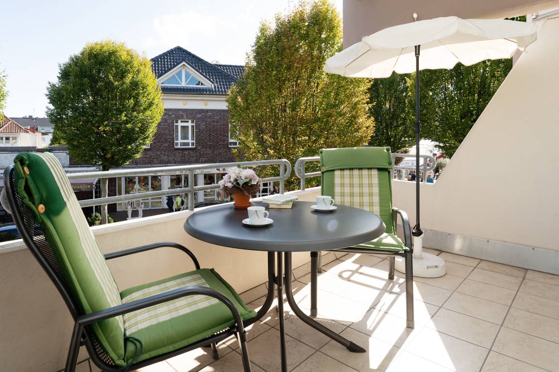 Das Herzstück der Wohnung bildet das Wohnzimmer mit dem angrenzenden Balkon - von hier können Sie im eigenen Strandkorb das Treiben auf der Wicheldorfstraße verfolgen. Die offene Küchenzeile ist nur wenige Schritte entfernt und sehr gut ausgestattet, sodass Sie auch im Urlaub kulinarisch bestens versorgt sind. Der angrenzende Essbereich bietet ausreichend Platz für gemeinsame Mahlzeiten. Das Schlafzimmer ist mit einem komfortablen Doppelbett und Kleiderschrank ausgestattet. Das Badezimmer verfügt über Dusche, Duschhocker und Kosmetikspiegel.