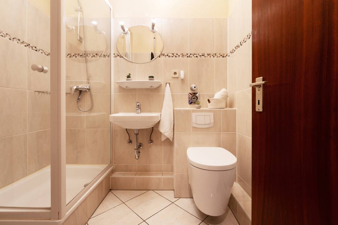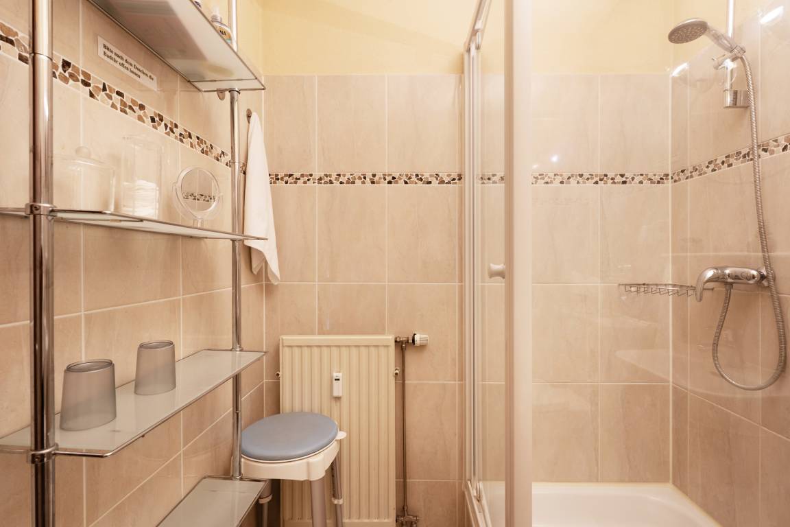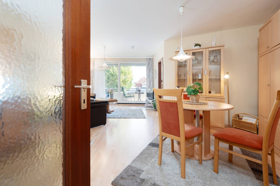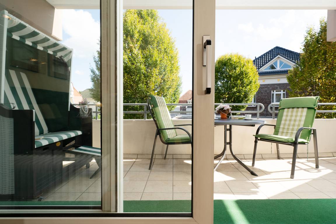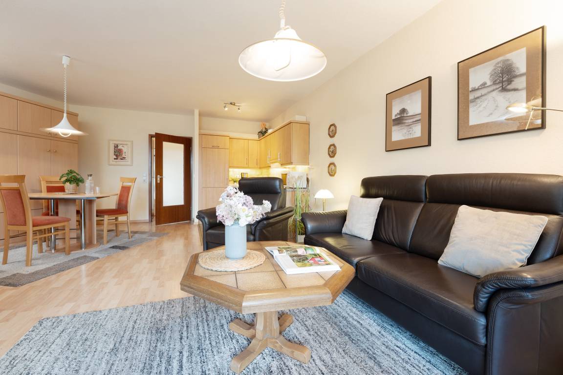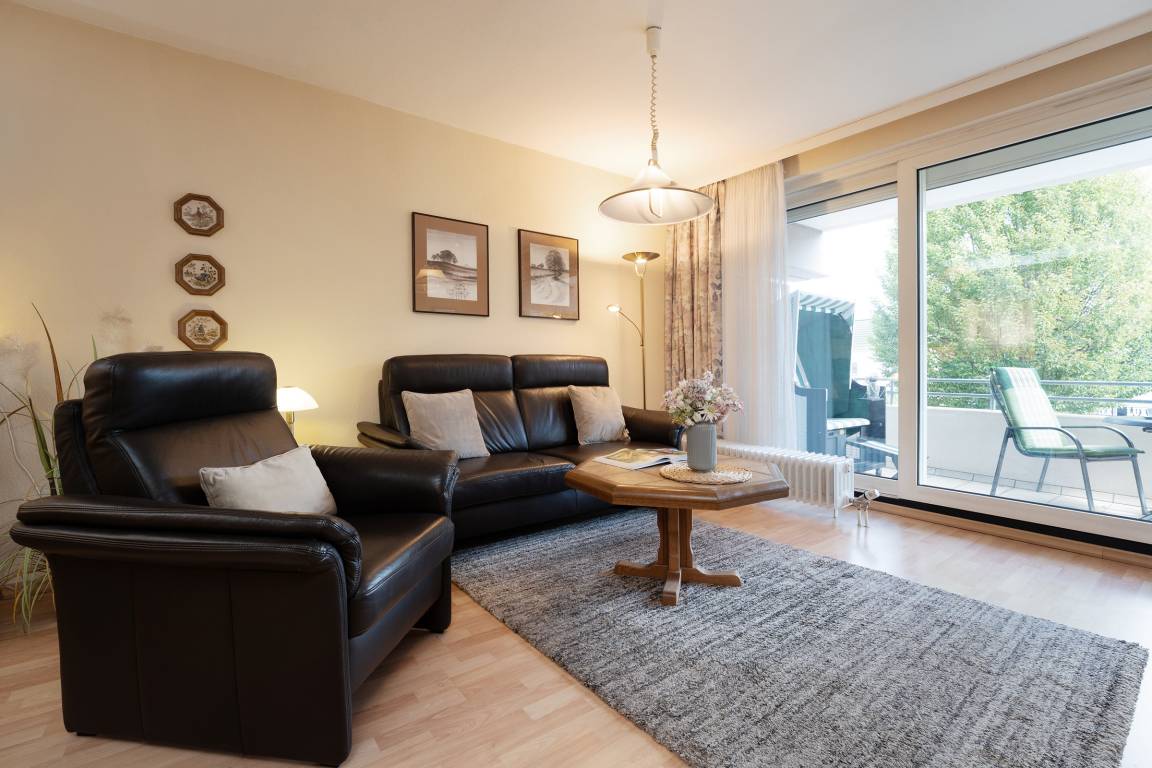 Das Herzstück der Wohnung bildet das Wohnzimmer mit dem angrenzenden Balkon - von hier können Sie im eigenen Strandkorb das Treiben auf der Wicheldorfstraße verfolgen. Die offene Küchenzeile ist nur wenige Schritte entfernt und sehr gut ausgestattet, sodass Sie auch im Urlaub kulinarisch bestens versorgt sind. Der angrenzende Essbereich bietet ausreichend Platz für gemeinsame Mahlzeiten. Das Schlafzimmer ist mit einem komfortablen Doppelbett und Kleiderschrank ausgestattet. Das Badezimmer verfügt über Dusche, Duschhocker und Kosmetikspiegel.