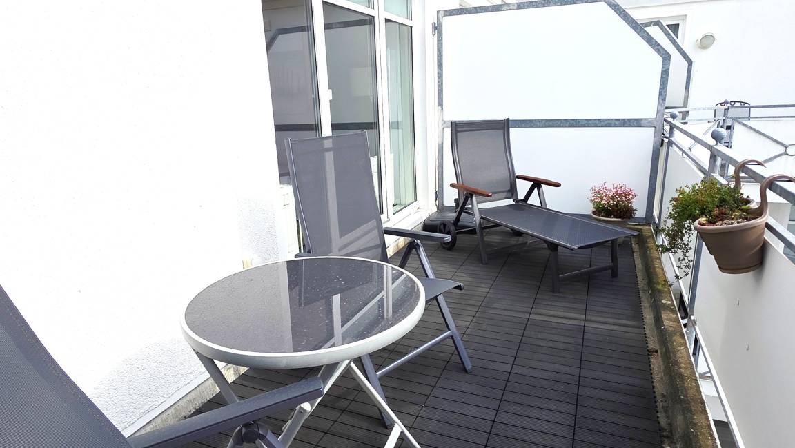 Der gemütliche, neu eingerichtete, helle Wohnraum ist mit einer Couch (ausziehbar als Bett für 1 Personen), Sideboard, Essplatz, TV & Radio ausgestattet. Hier haben Sie Zugang zum sonnigen, möblierten Süd-Balkon.