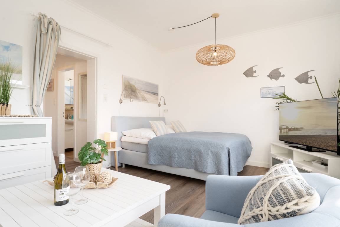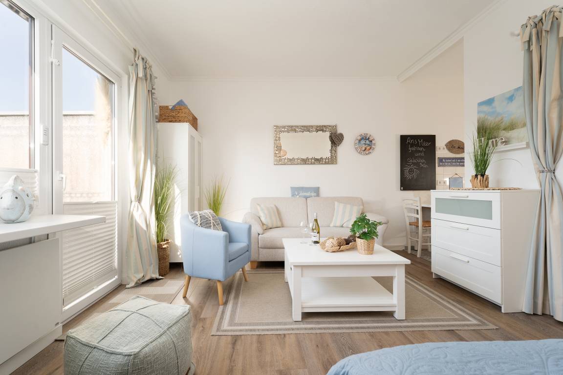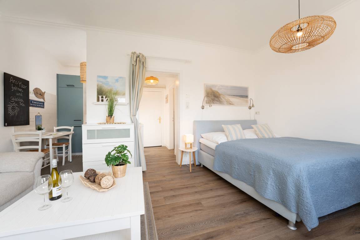 „Sehr geehrtes Kraushaar Ferienwohnungs-Team, Wir haben Weihnachten und Silvester in dieser gemütlichen, hübsch dekorierten kleinen Wohnung verbracht. Auch die Lage ist super: Kleiner Spaziergang von 5 Min. und schon ist man am Strand/Promenade.“