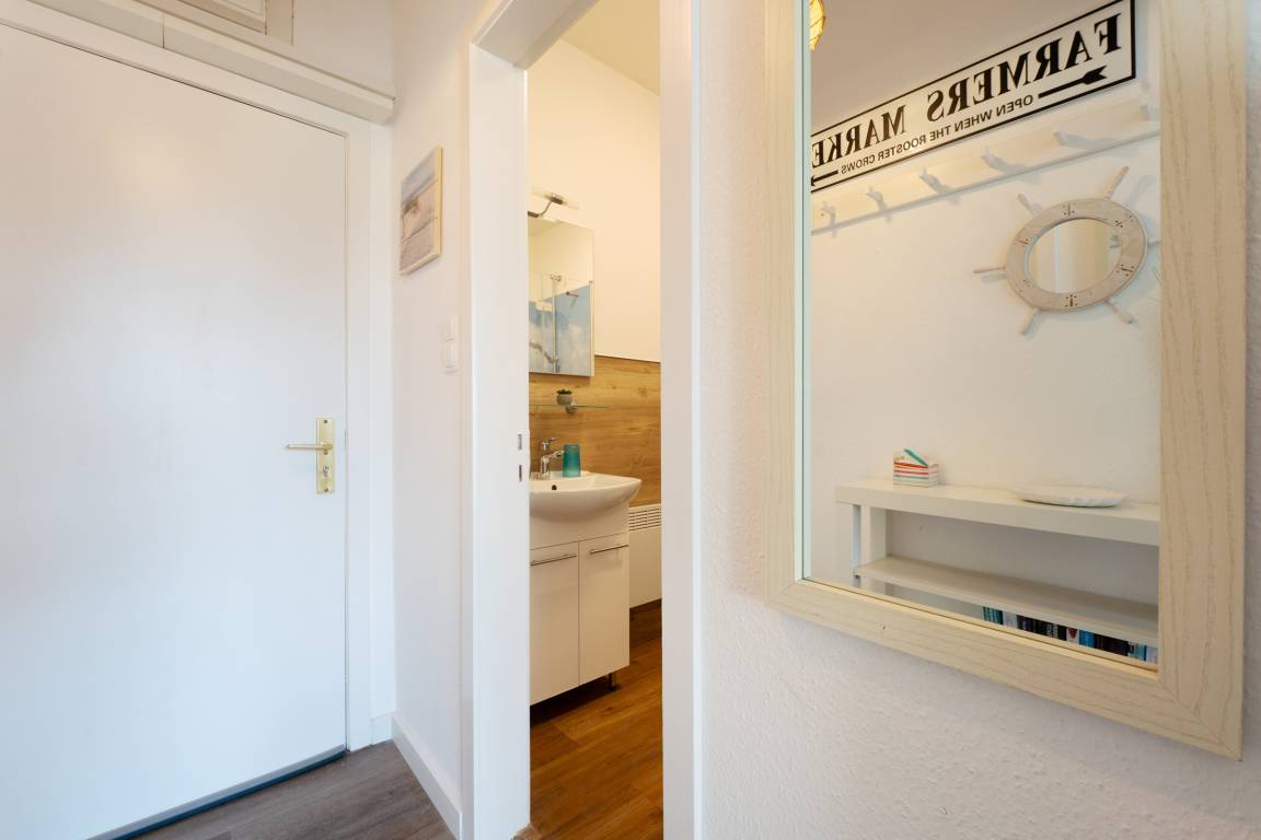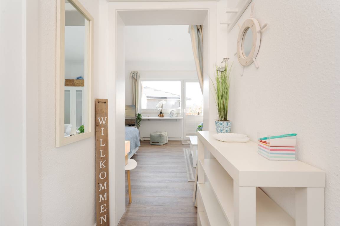 „Eine schöne kleine Wohnung in guter Lage. Man erreicht in wenigen Minuten alle Geschäfte oder auch die Promenade zu Fuß. Obstkorb u. persönliche adressierte Karte zur Begrüßung ist auch nicht selbstverständlich. Der CheckIn über den Safe nimmt ebenfalls den Zeitdruck bei der Anreise.“