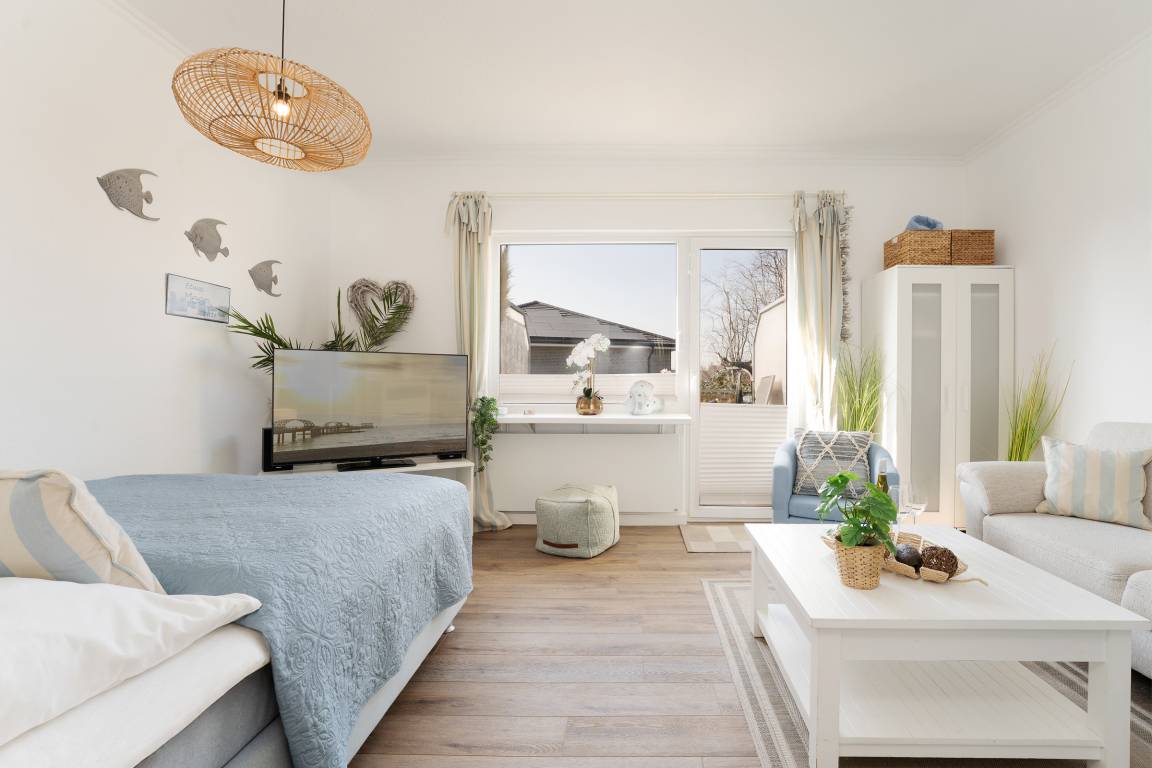 Diese liebevoll eingerichtete 1-Zimmerwohnung liegt in einem ruhigen Wohngebiet und dennoch zentral und strandnah. Sie erreichen den nächsten Supermarkt und Bäcker nach nur 400m und auch die belebte Strandpromenade mit Ihren zahlreichen Cafés und Restaurants liegt nur einen kleinen Spaziergang von 650m entfernt. Ein wunderbarer Ausgangspunkt für einen herrlichen Ostseeurlaub!