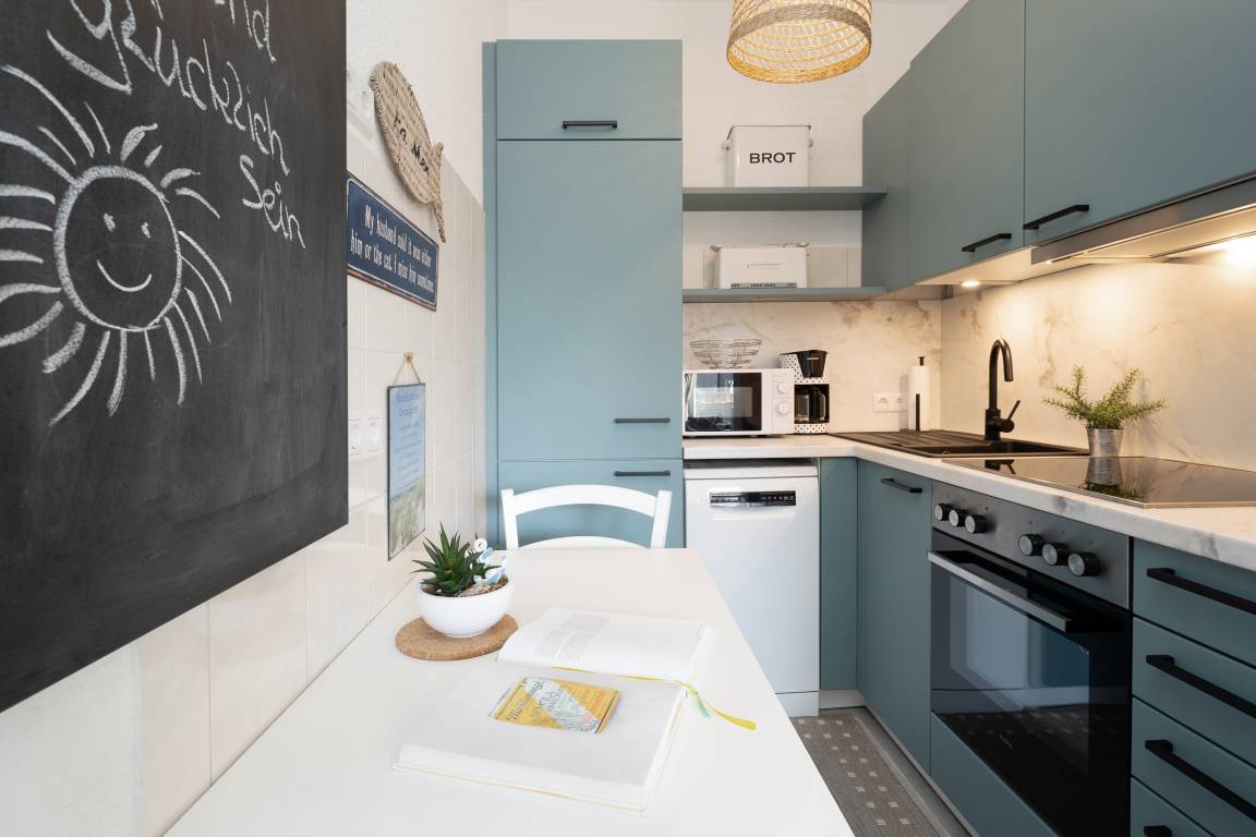 „Waren nun zum 2. Mal in der kleinen gemütlichen Wohnung, zum Wohlfühlen. Schön ist auch der eigene Strandkorb am Strand.“