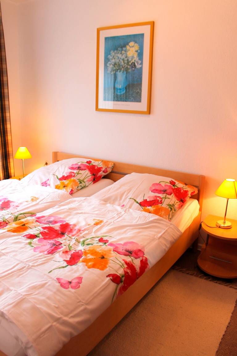 Eins der beiden Schlafzimmer ist mit Doppelbett 1,80 x 2 m sowie einem großen Kleiderschrank versehen. Ein Kinderbett kann hier nicht gestellt werden.