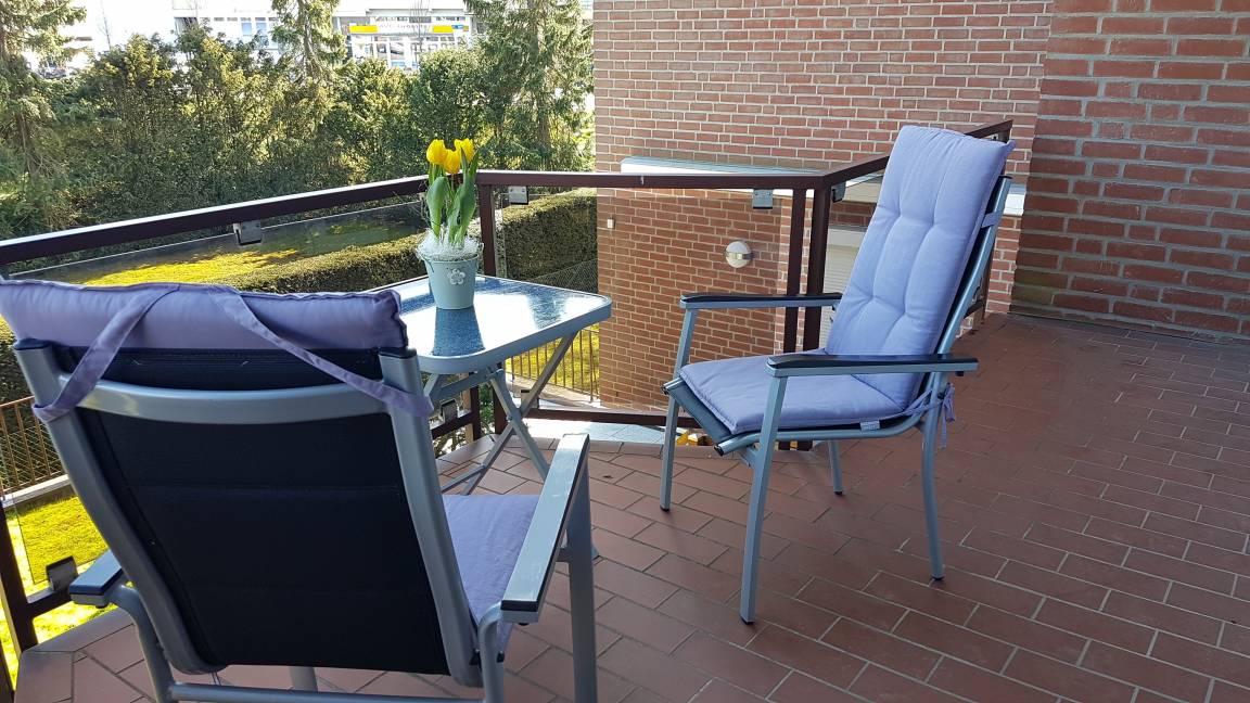 Direkt am Deich und in unmittelbarer Strandnähe gelegene gemütliche Zwei-Zimmer-Wohnung mit großem Balkon.