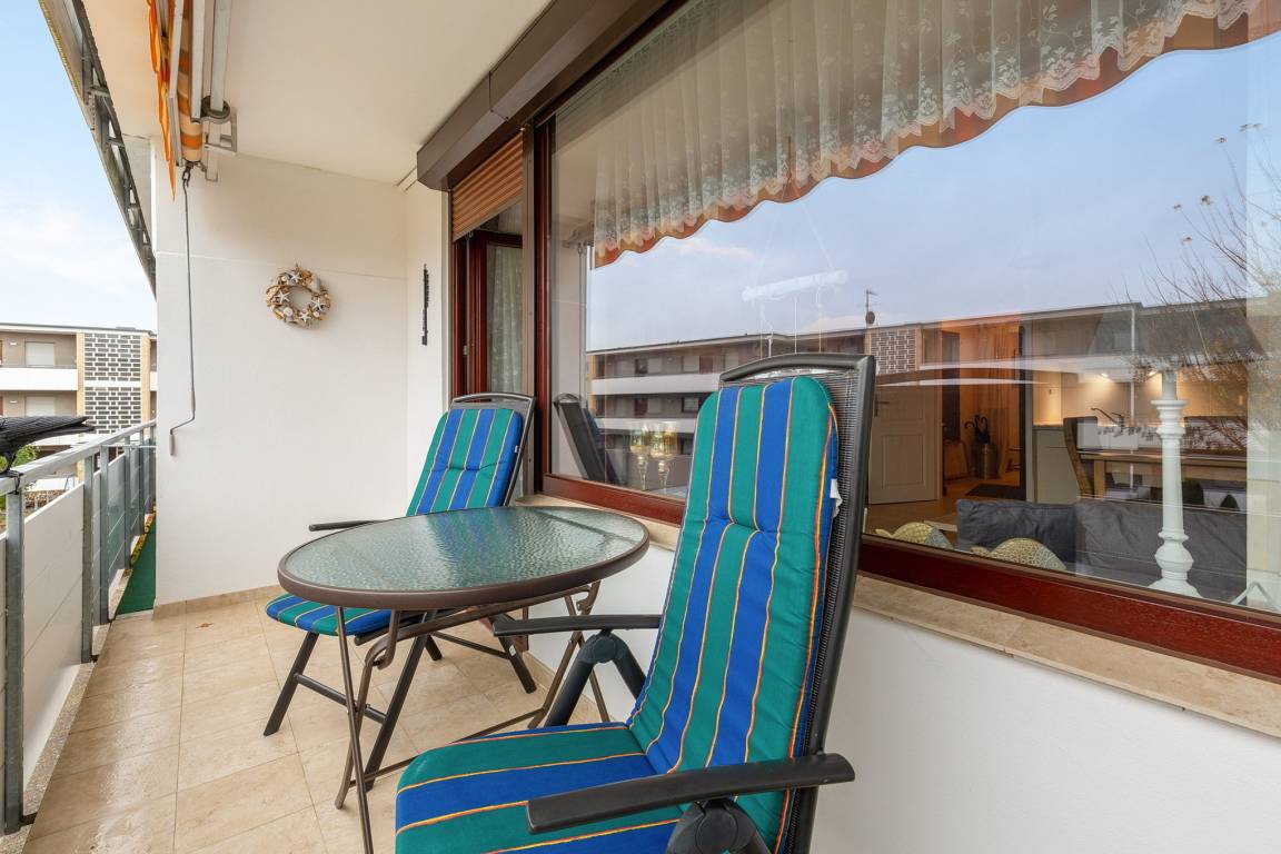 Balkon in süd-westliche Ausrichtung mit Sitzplätzen für 2 Personen. Eine Markise sorgt an sonnigen Tagen für angenehmen Schatten, außerdem steht ein Wäscheständer zur Verfügung. Eigener PKW-Stellplatz vor dem Haus. Abschließbarer Fahrradkeller im Haus. Waschmaschine und Trockner gegen Gebühr im Haus.