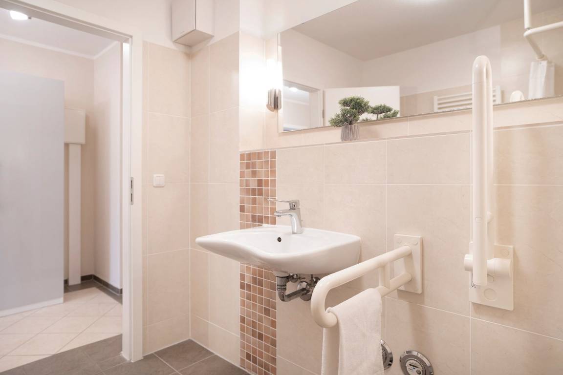 „Gute Lage, wenige Minuten bis zur Promenade. Das Boxspringbett ist bequem und auch sonst ist die Wohnung gut ausgestattet. Schön wäre noch ein Schminkspiegel im Bad.“
