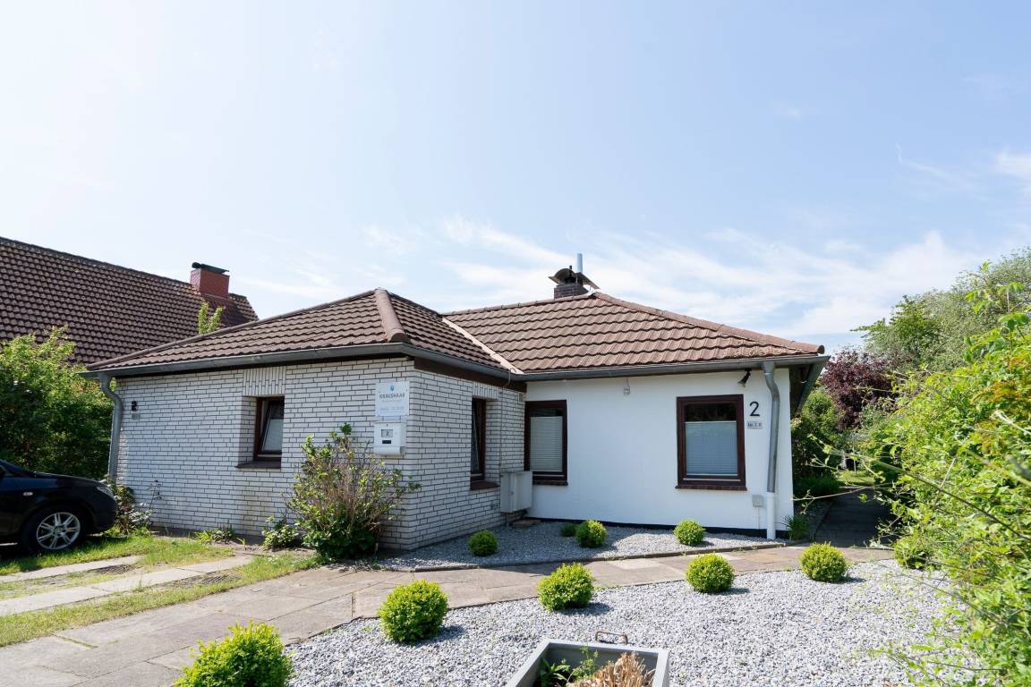 Herzlich willkommen in Ihrer 3-Zimmer Ferienwohnung für bis zu 2 Erwachsene und 2 Kinder. Diese befindet sich in einem Doppelbungalow auf einem 650 m² großem Grundstück.