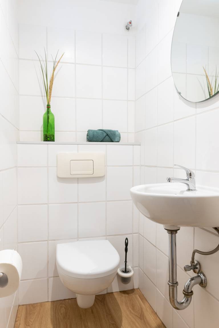 Die Waschmaschine und der Trockner sind gegen Gebühr für alle 3 Wohnungen des Appartementhauses zugängig – ebenso wie der abgeschlossene Fahrradraum (Platz begrenzt!). Für dein Auto halten wir direkt am Haus einen Stellplatz bereit.
