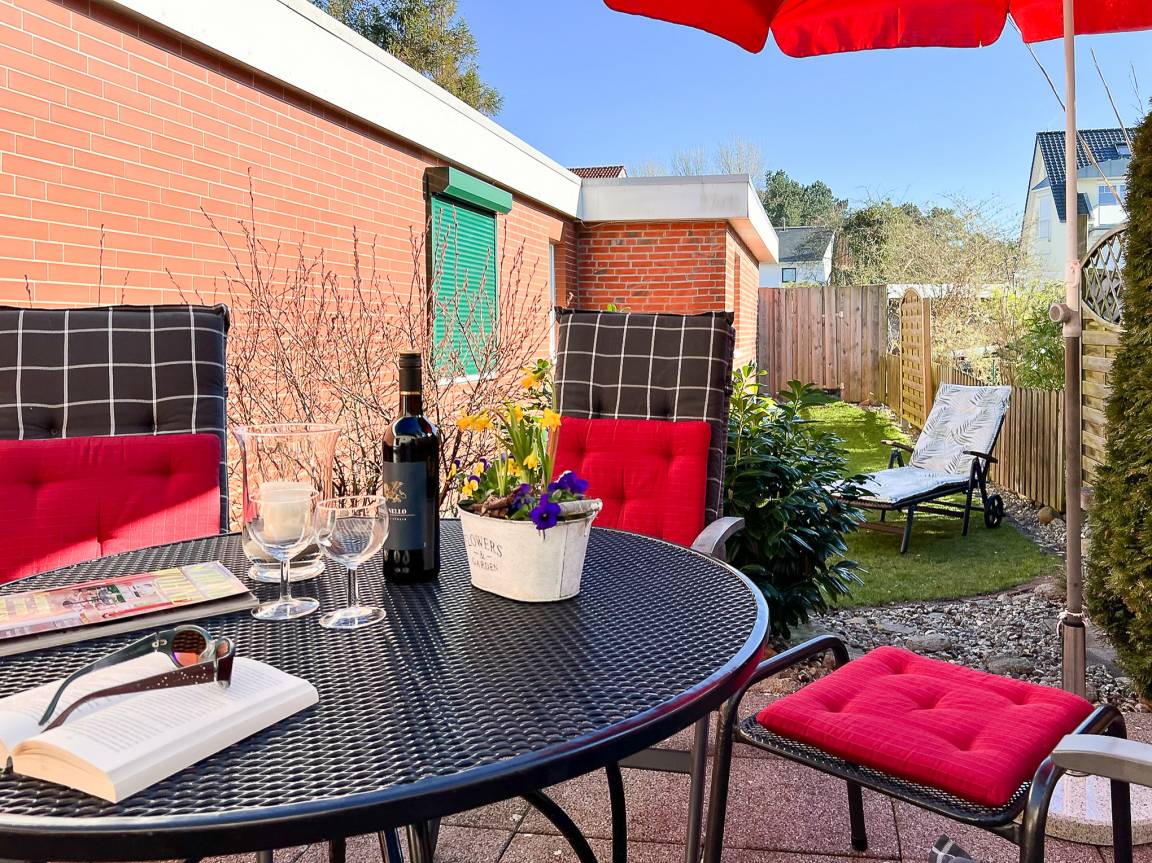 Ruhig gelegene 3-Zimmer-Wohnung mit Terrasse und eigenem abgeschlossenem Gartenbereich. In der gesamten Wohnung (65 qm) schafft Design-Fußboden in Holzoptik eine moderne und einladend-hygienische Atmosphäre. Ideal für den Familienurlaub mit 2 Schlafräumen und gleichermaßen beliebt bei den Erwachsenen, da sich alle Zimmer auf einer Ebene befinden.