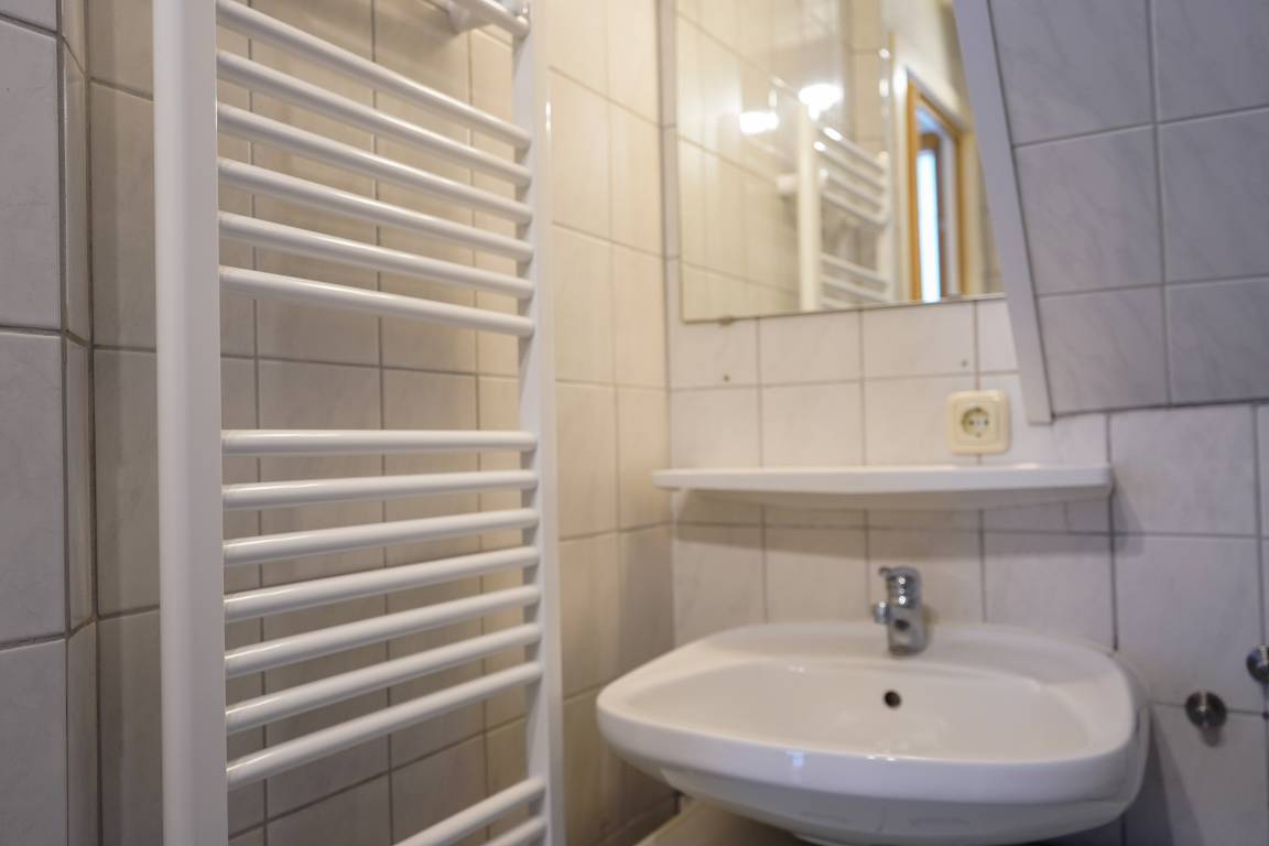 Im Flur befindet sich eine Pantryküche, dies ermöglicht es Ihnen, kleine Mahlzeiten zuzubereiten. Das Wohn-/Schlafzimmer ist mit einem gemütlichen Doppelbett, einem TV mit Sat/Kab./DVB-T und einem Balkon/Loggia ausgestattet, auf dem Sie entspannte Stunden verbringen können.