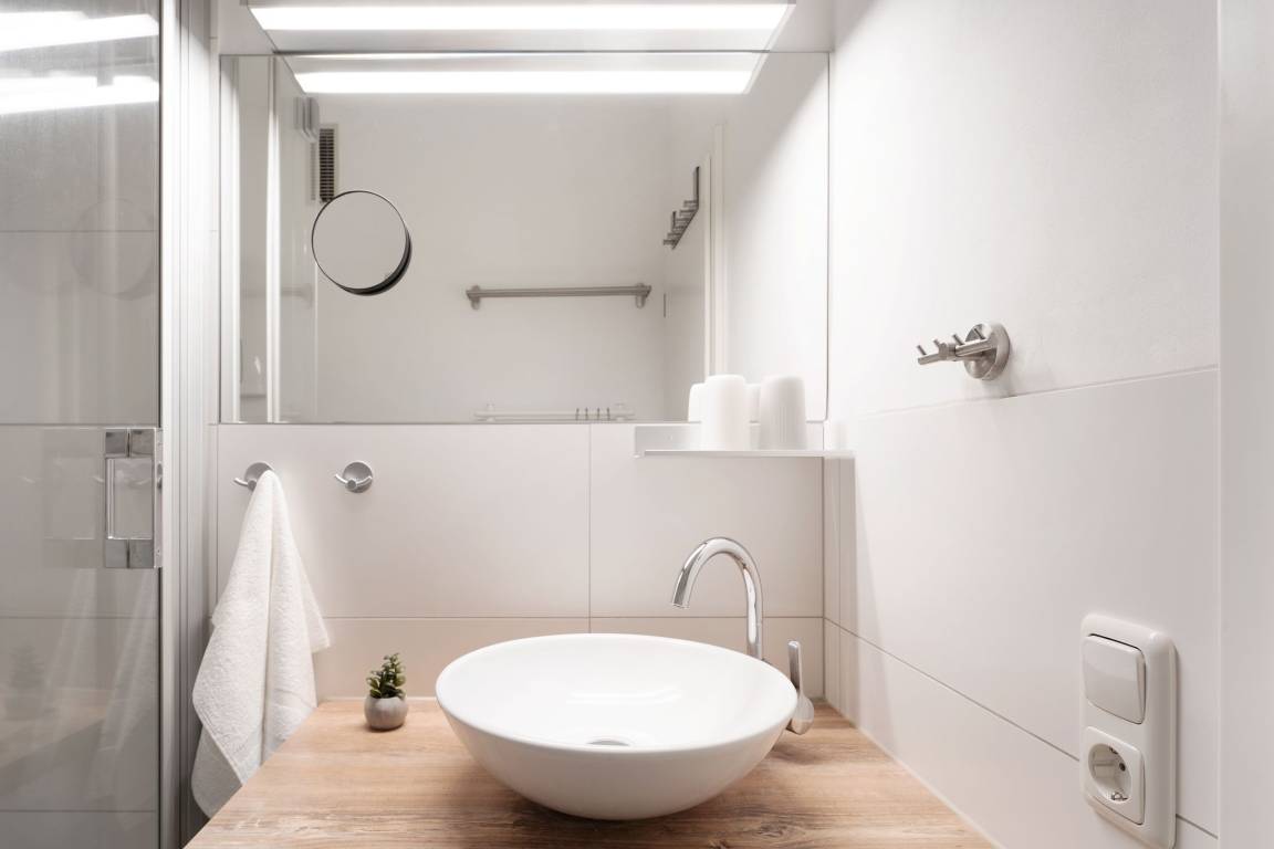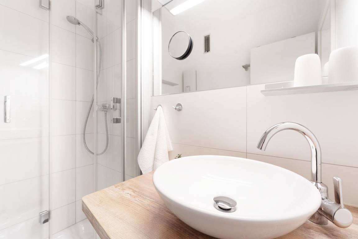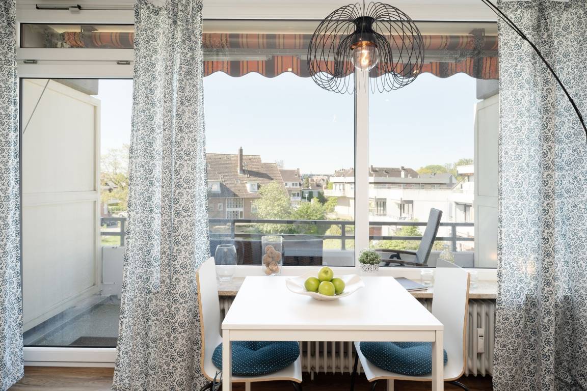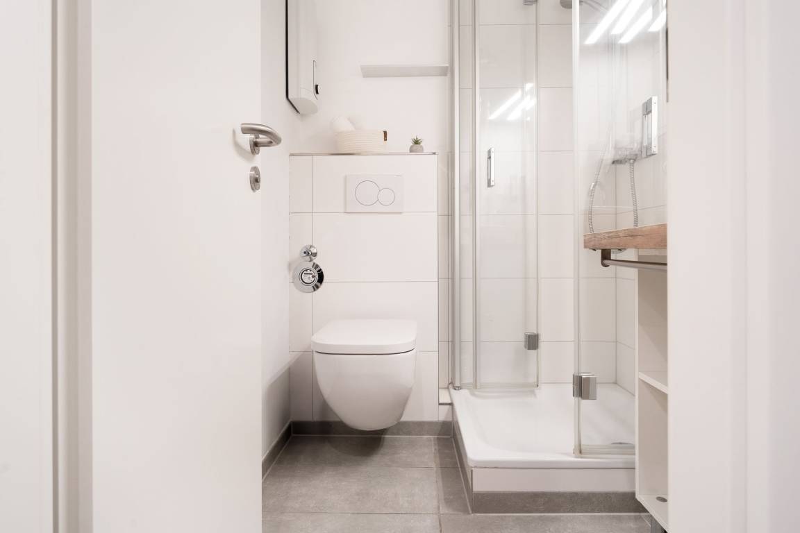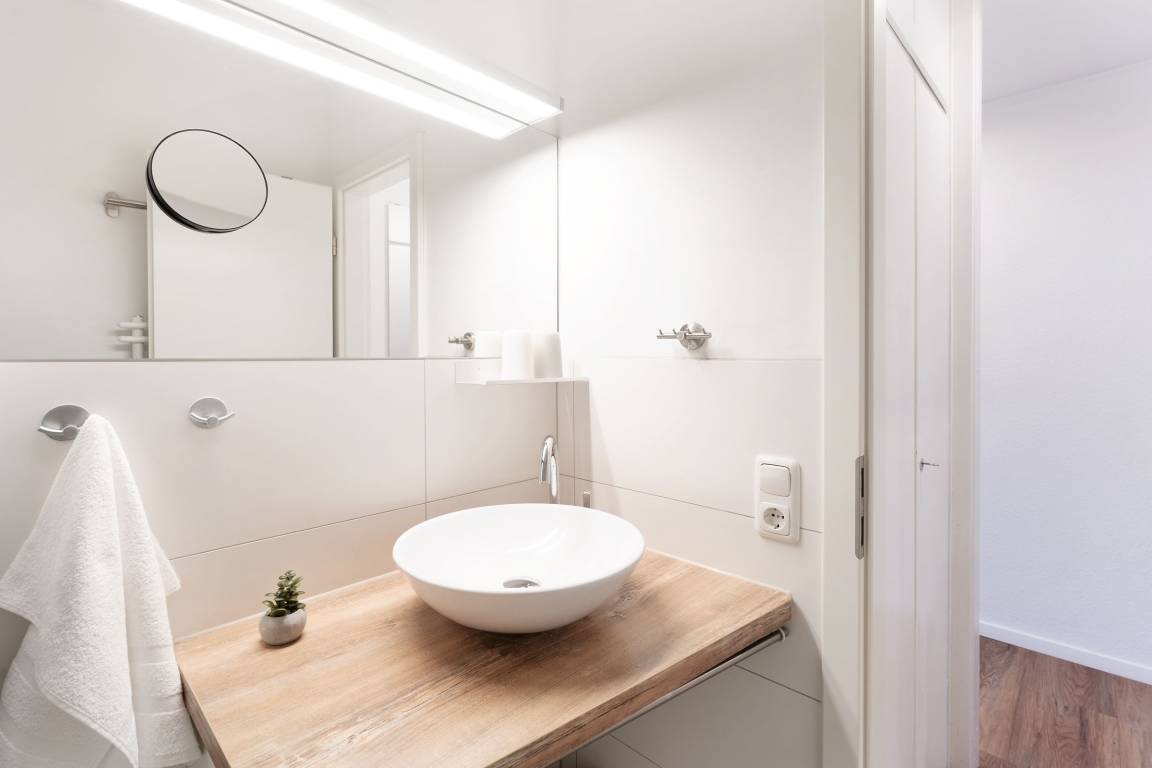 Mittelpunkt der Wohnung bildet der kombinierte Wohn-/Essbereich mit integrierter Küchenzeile und direktem Balkonzugang. Hier lässt es sich auf dem großzügigen Sofa auch an Regentagen gemütlich machen, ein Flachbildfernseher sowie eine Bluetooth-Musikbox sorgen für Unterhaltung. LED Einbaustrahler in der Zimmerdecke sorgen für warmes Licht und eine heimelige Atmosphäre. Das Sofa lässt sich abends bei Bedarf mit wenigen Handgriffen bequem in eine Schlafstätte (140x200 cm)verwandeln. Auf dem Balkon mit seitlichem, saisonalen Ostsee-Fernblick können Sie die Sonne vom Morgen bis zum Nachmittag genießen oder unter der Markise im Schatten sitzen. Ein Tisch mit zwei Stühlen lädt dort zum gemütlichen Frühstück inklusive herrlicher Ostseeluft ein. Die Küche ist voll ausgestattet und lässt keine Wünsche offen, vom Induktionsherd über eine Spülmaschine und einen Backofen, sowie einen Kühlschrank mit Gefrierfach finden Sie hier alles, was einem das Kochen im Urlaub zum Vergnügen macht. Ein ausziehbarer Esstisch rundet den Essbereich ab. Im Schlafzimmer mit gemütlichem Doppelbett (2x 80x200 cm) befindet sich durch einen Kleiderschrank und eine Kommode ausreichend Staumöglichkeit für Ihre Urlaubskleidung. Das geschmackvolle und moderne Badezimmer ist hell gefliest und mit allem ausgestattet, was Sie für die körperliche Hygiene benötigen. Neben WC, Dusche, Waschtisch mit Unterbauschrank und Spiegel steht Ihnen auch ein Föhn zur Verfügung. Die Wohnung ist durchgehend mit einem Designerboden in Holzoptik versehen. Der WLAN-Anschluss ist inklusive.
