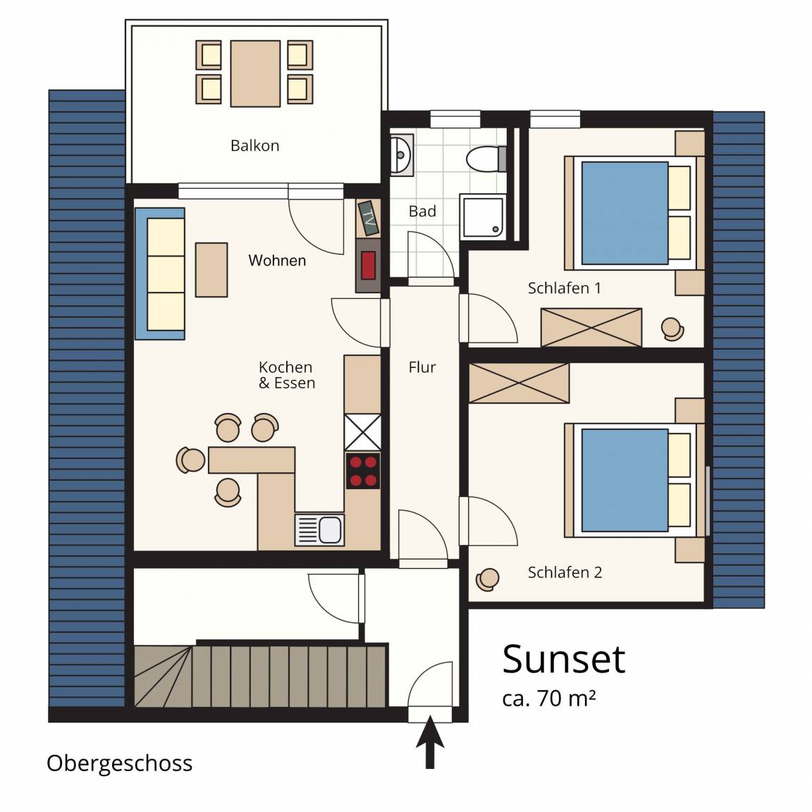 70 m² Ferienwohnung ∙ 2 Schlafzimmer ∙ 4 Gäste