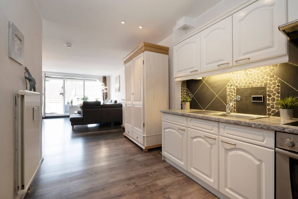 Im Herzen von Grömitz empfängt Sie diese Wohnung mit einer offenen Küche, die in den Wohnraum mit Schlafcouch (110x210 cm), Kleiderschrank und TV übergeht. Das benachbarte Schlafzimmer verfügt über ein Doppelbett (2x 80x200 cm). Für den frischen Start in den Tag bietet Ihnen das innenliegende Badezimmer mit Dusche eine gute Basis, um danach den ersten Kaffee des Tages auf der möblierten Dachterrasse mit Südausrichtung unter der Markise zu genießen. Besonderen Komfort bieten die Verdunkelungsplissees an allen Fenstern der Wohnung.