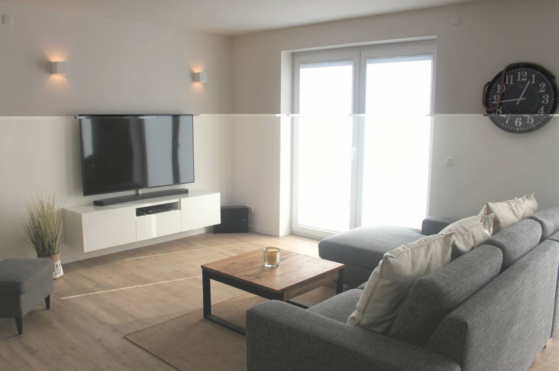 Ihr 3-Zimmer Urlaubsapartment auf 85 m² mit viel moderner Technik und hohem Komfort befindet sich im 1.OG. Große, bodentiefe Fenster, elektrische Außenrollläden sowie Fußbodenheizung in allen