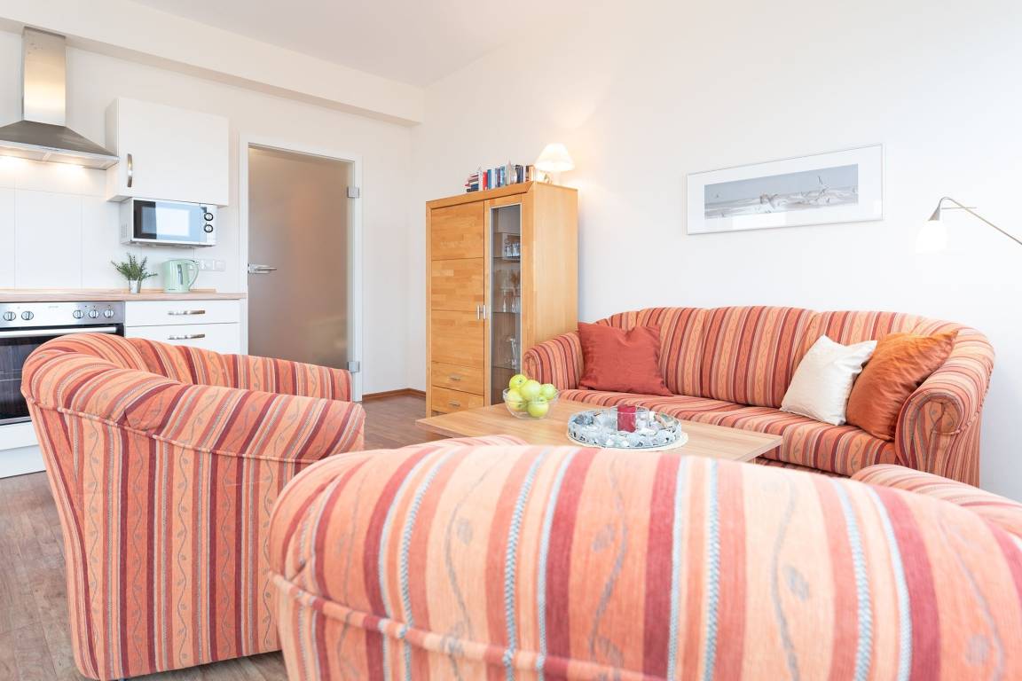 Dieses geschmackvolle 2-Zimmer-Fereindomizil befindet sich in der 1. Etage und ist über eine separate Außentreppe erreichbar. Mit einer Wohnfläche von ca. 50 m² bietet sie ausreichend Platz für bis zu 2 Personen.