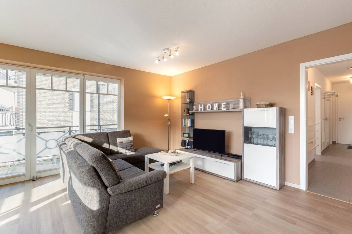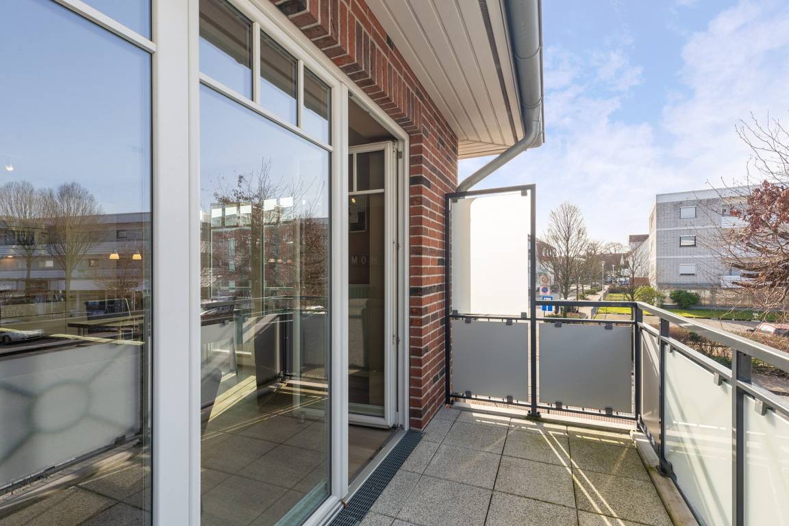 Das moderne Wohnhaus befindet sich in zentraler Lage von Grömitz nur wenige Gehminuten vom Strand entfernt. Alle Wohnungen sind barrierefrei durch einen Aufzug erreichbar. Die Parkplätze befinden sich hinter dem Gebäude.