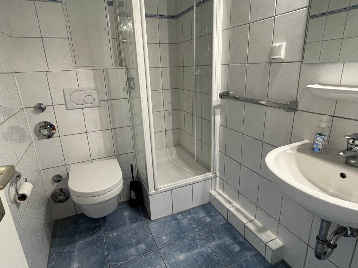 Ein helles, freundliches Bad mit Duschkabine steht Ihnen zur Verfügung.