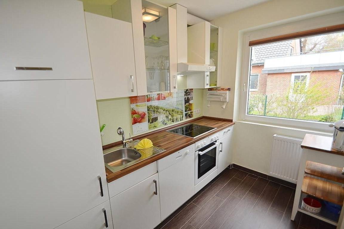 Moderne, komplett ausgestattete, offene Küche mit 4 Platten Cerankochfeld, Backofen, Spülmaschine, Kühlschrank mit 3-Sterne Gefrierfach, Kaffeemaschine, Toaster, Wasserkocher und Mixer.