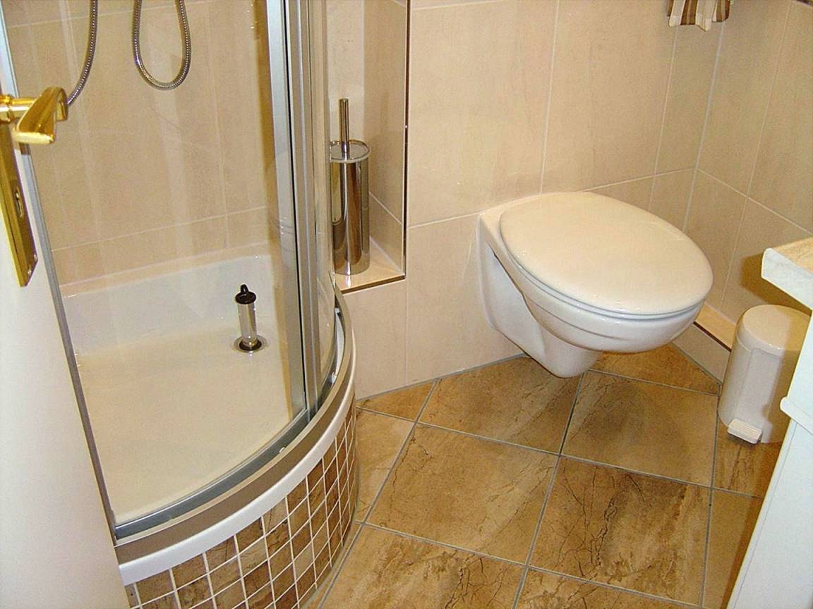 Modern gefliestes Tageslicht-Duschbad mit Rundglasdusche, Waschbecken & WC.