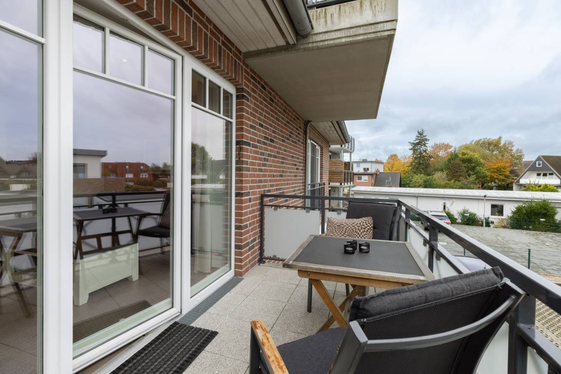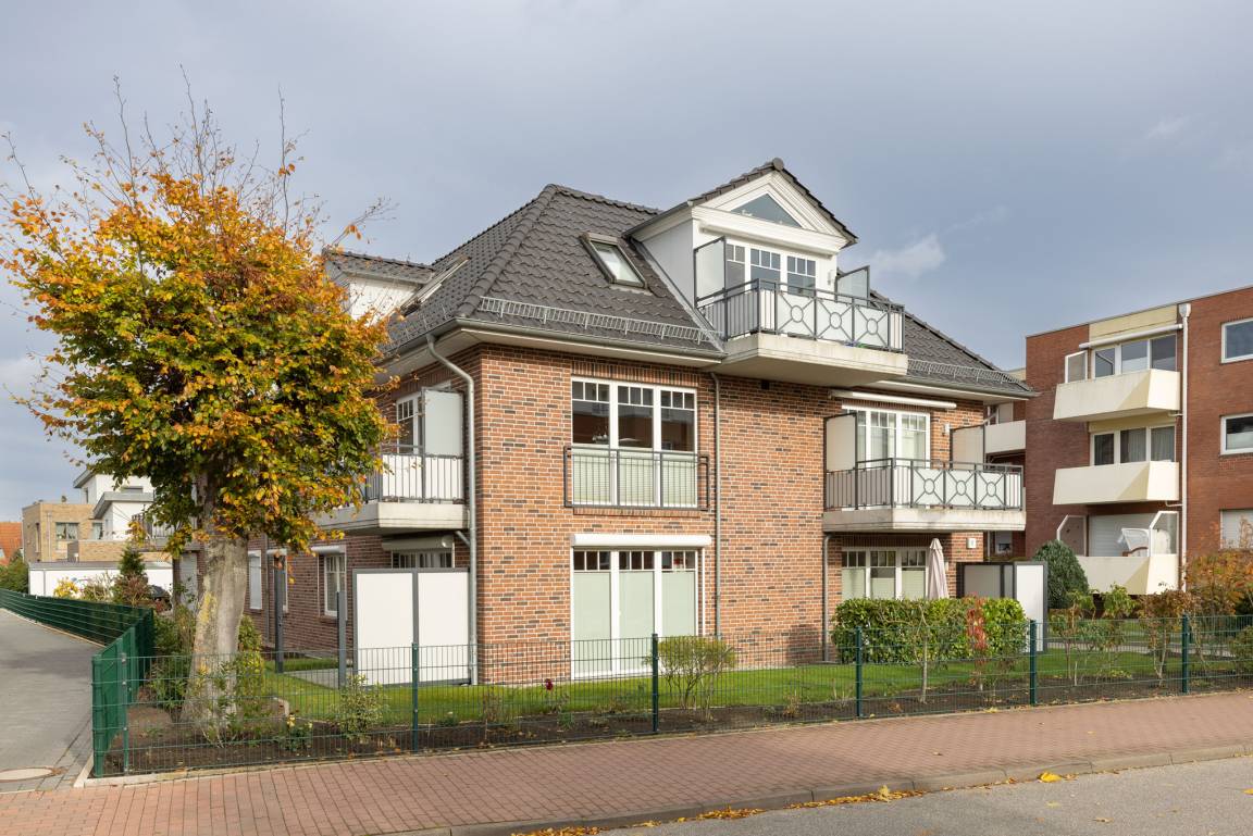Das moderne Wohnhaus befindet sich in zentraler Lage von Grömitz nur wenige Gehminuten vom Strand entfernt. Alle Wohnungen sind barrierefrei durch einen Aufzug erreichbar. Die Parkplätze befinden sich hinter dem Gebäude.