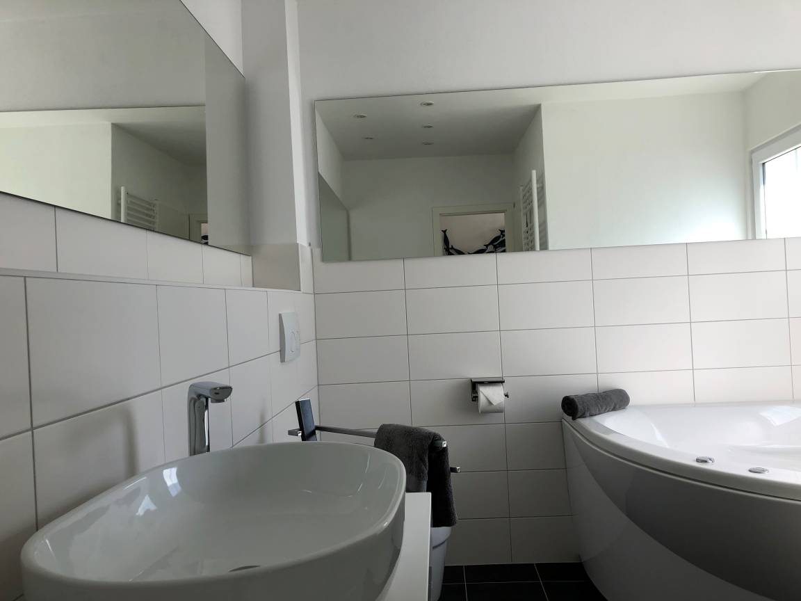 Die Ferienwohnung liegt im Erdgeschoss, hat 3 Schlafzimmer, 2 Bäder und bietet Platz für bis zu 6 Personen. Sauna und Whirlwann laden zum Entspannen und Wellnessen ein.