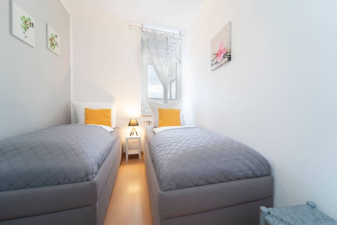 Schlafzimmer: 2 Einzelbetten (2x 80x200 cm), elektrische Außenjalousien