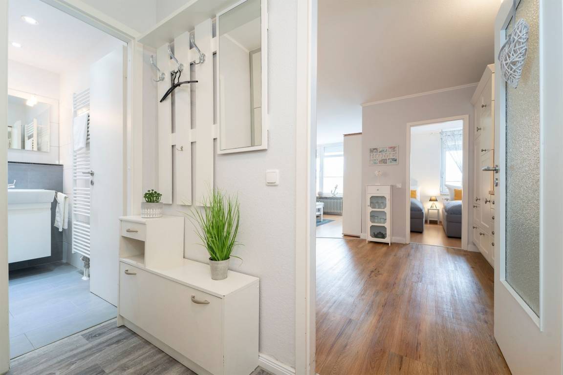 Über ein Treppenhaus mit Fahrstuhl erreichen Sie die gut aufgeteilte 2-Zimmer-Ferienwohnung mit einer Wohnfläche von ca. 47 m². Die Wohnung ist für max. 4 Personen geeignet.